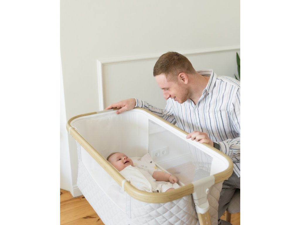 Vďaka výklopnému bočnému panelu sa dá použiť ako samostatná postieľka alebo ako postieľka pripevnená k posteli rodičov. Pomocou osvetleného ovládacieho panela alebo diaľkového ovládača si môžete vybrať preferovaný režim.