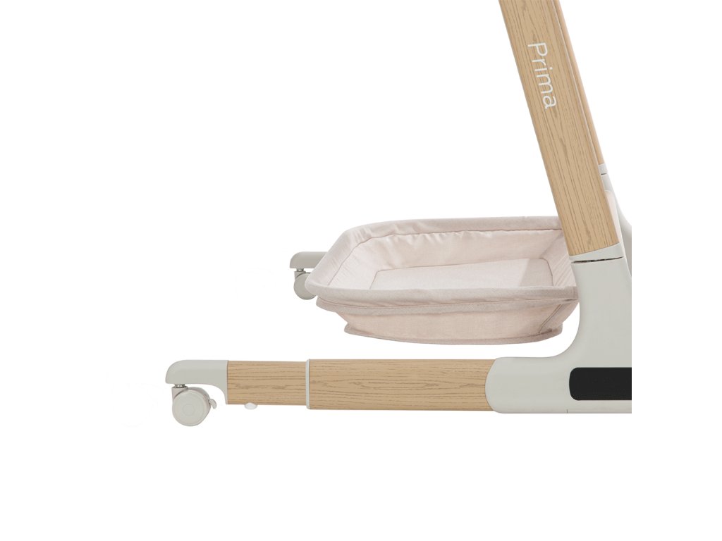 Postieľka ponúka 6 úrovní nastavenia výšky, ktoré sa dajú ľahko prispôsobiť pomocou tlačidiel. Výklopný bočný panel umožňuje používať Carrello Prima ako postieľku pripevnenú k posteli rodičov, čo podporuje spoločné spanie. Sada obsahuje popruhy na bezpečné pripevnenie postieľky k posteli rodičov.
