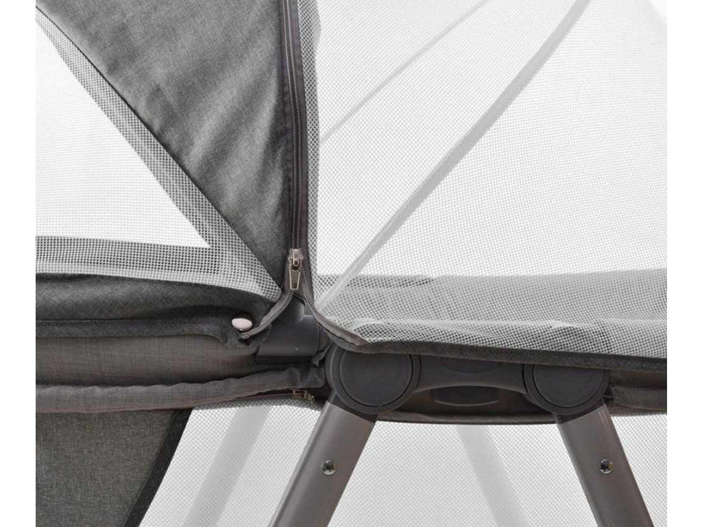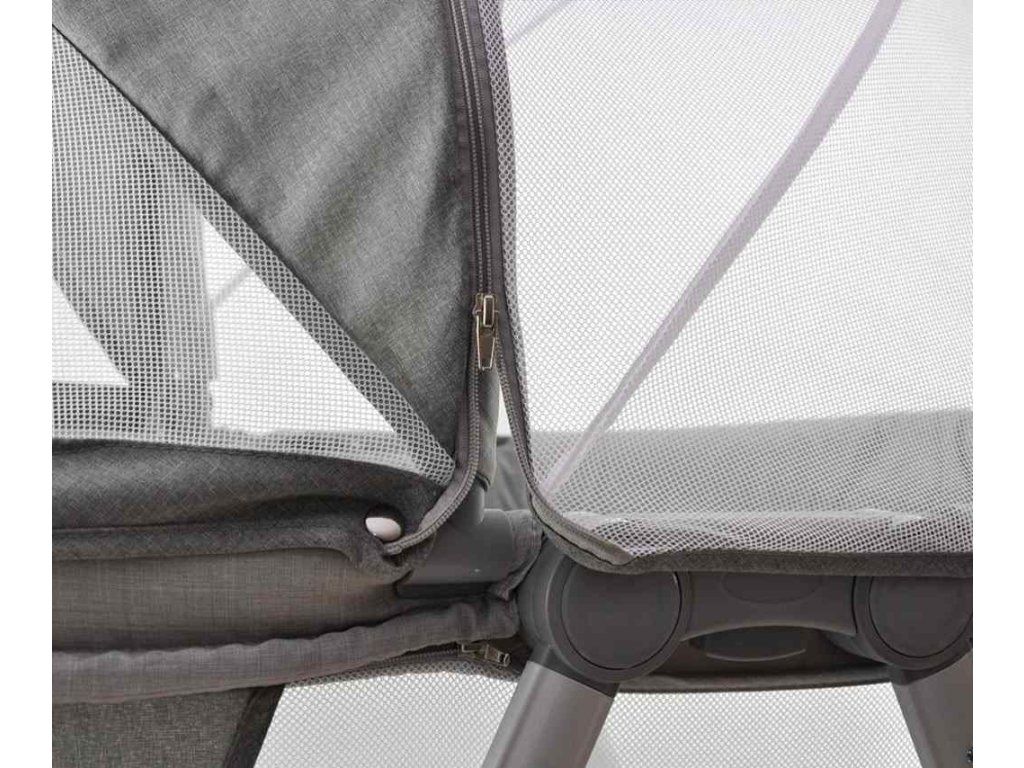 Funkcia cestovnej postieľky Jane umožňuje jej rýchle a jednoduché zloženie a zbalenie do praktickej špeciálnej tašky, ktorá je súčasťou balenia. Pripojiteľná strieška s odnímateľnou moskytiérou ochráni vaše dieťa pred hmyzom a zvieratami, takže si môžete užívať čas na záhrade so svojím dieťaťom bez obáv z uštipnutia hmyzom.