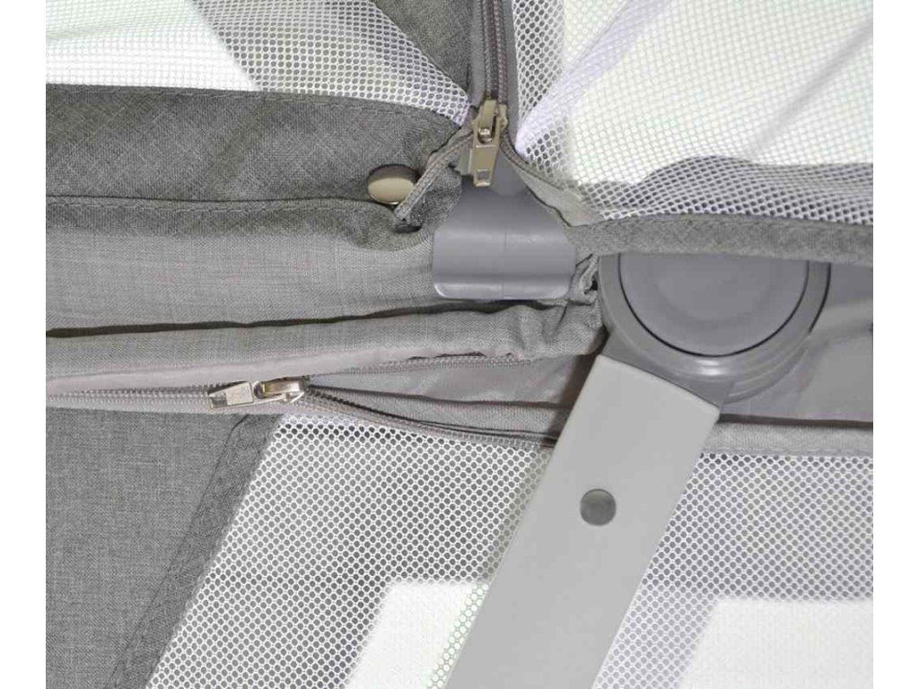 Vysoké bočné steny zo sieťoviny zabezpečujú dostatočnú cirkuláciu vzduchu a umožňujú rodičovi mať plnú kontrolu a rýchlo reagovať, keď sa dieťa prebudí. To pomáha dieťaťu rýchlejšie sa upokojiť a lepšie zaspať.