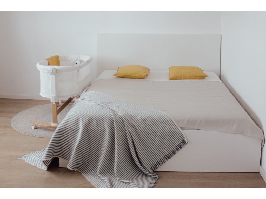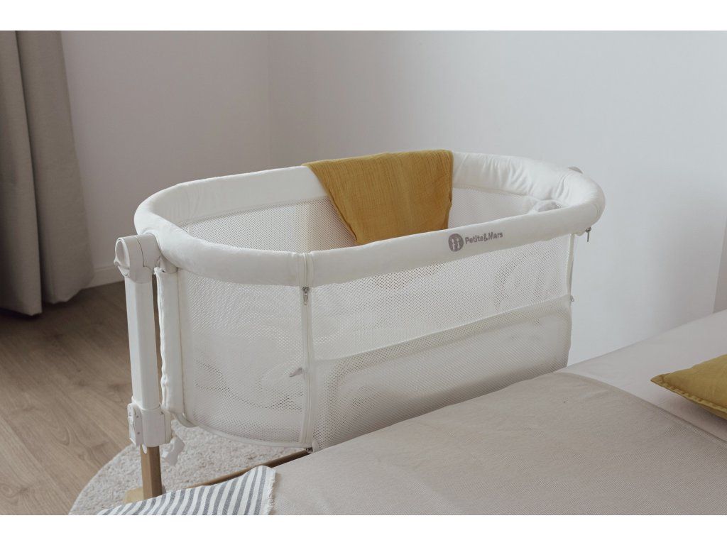 - Výška postieľky je nastaviteľná do 5 polôh, ľahko ju prispôsobíte výške rodičovskej postele (vhodná je pre postele, ktoré majú vrch matraca vo výške 56,5 – 68,5 cm)