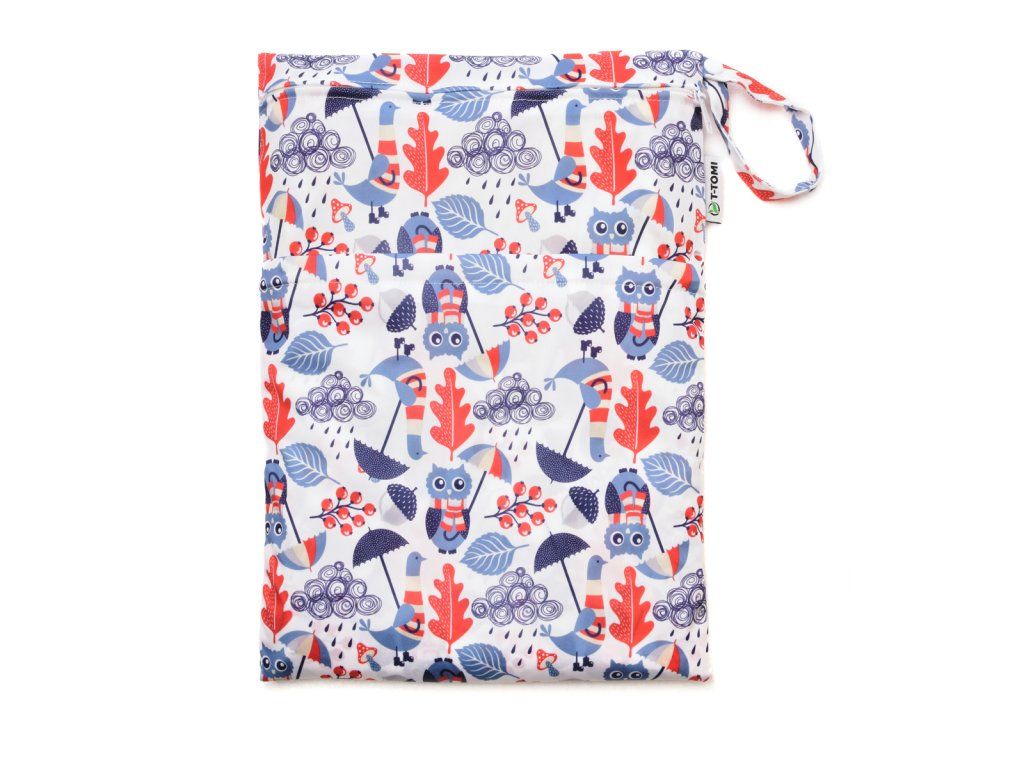 Nepremokavý sáčok T-TOMI je vyrobené zo 100% polyesteru s PUL záterom. Vďaka dvom veľkým vreckám so zapínaním na zips a praktickým uchom s patentkou sa stane Vaším nepostrádateľným pomocníkom nielen doma ale aj na cestách. Je vhodné nielen pre mokré plienky, ale aj pre plavky, uterák, osušku, dudlík, dáždnik či iné všestranné využitie.100% polyester s PUL záterom