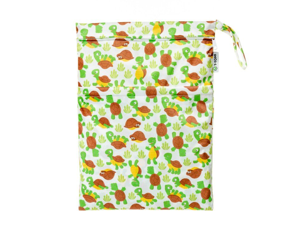 Nepremokavý sáčok T-TOMI je vyrobené zo 100% polyesteru s PUL záterom. Vďaka dvom veľkým vreckám so zapínaním na zips a praktickým uchom s patentkou sa stane Vaším nepostrádateľným pomocníkom nielen doma ale aj na cestách. Je vhodné nielen pre mokré plienky, ale aj pre plavky, uterák, osušku, dudlík, dáždnik či iné všestranné využitie.100% polyester s PUL záterom