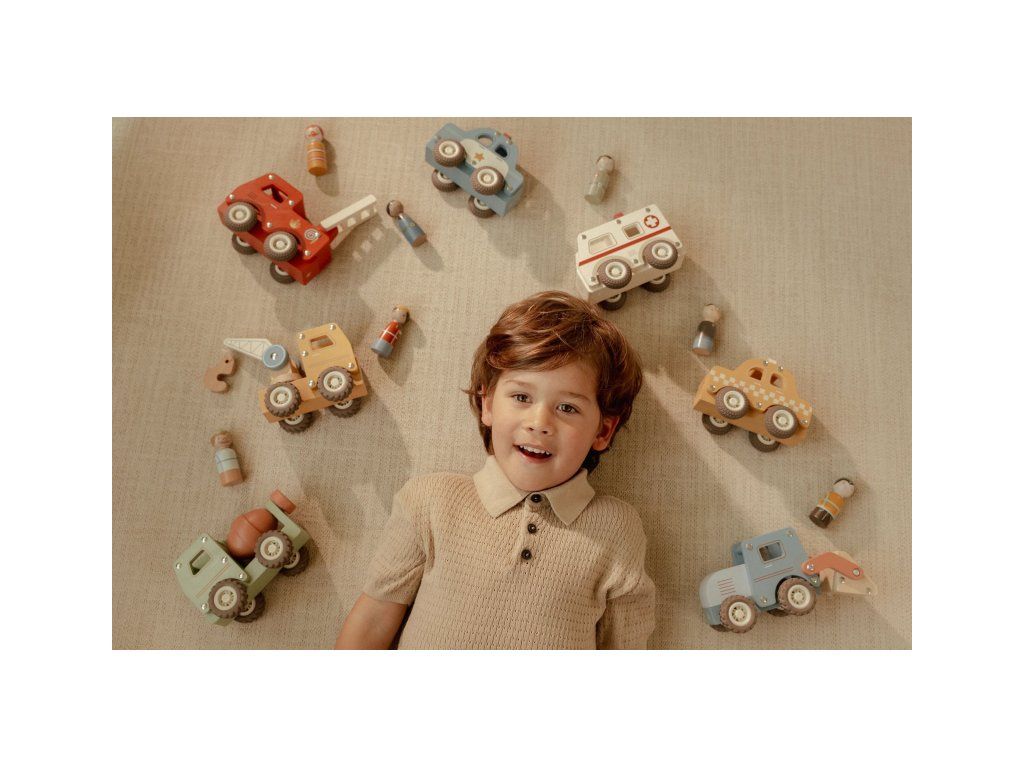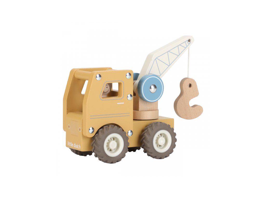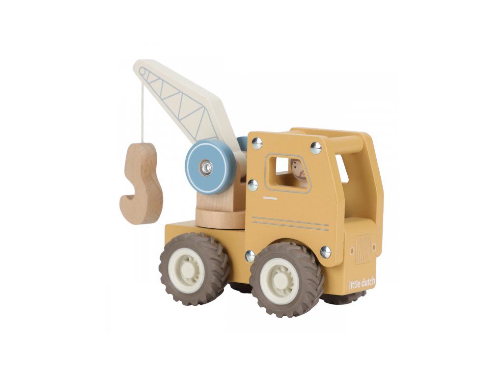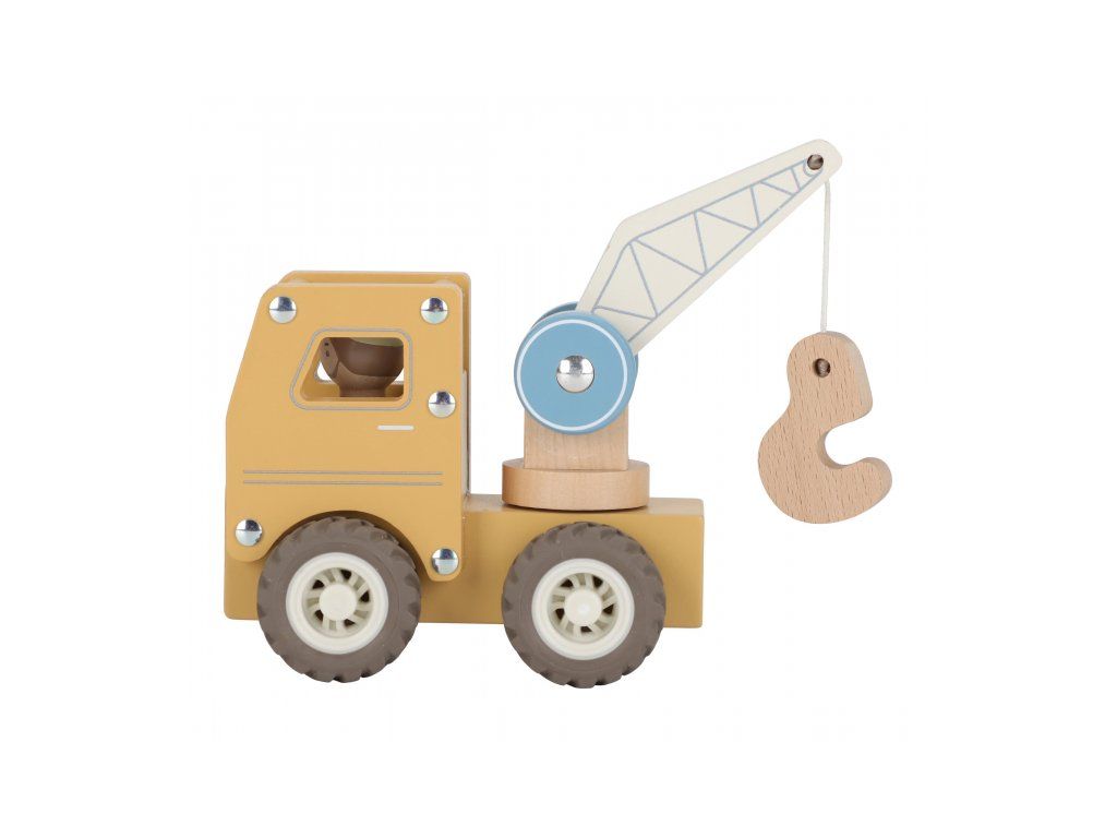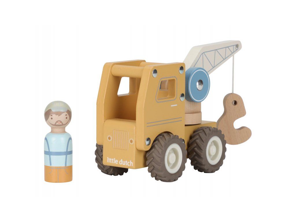 Súčasťou je aj drevená figúrka stavbára, ktorá dodáva hre realistický rozmer. Autožeriav môžete kombinovať s ďalšími stavebnými vozidlami - napríklad s nakladačom, miešačkou alebo sklápačkou - pre kompletné stavebné dobrodružstvo.