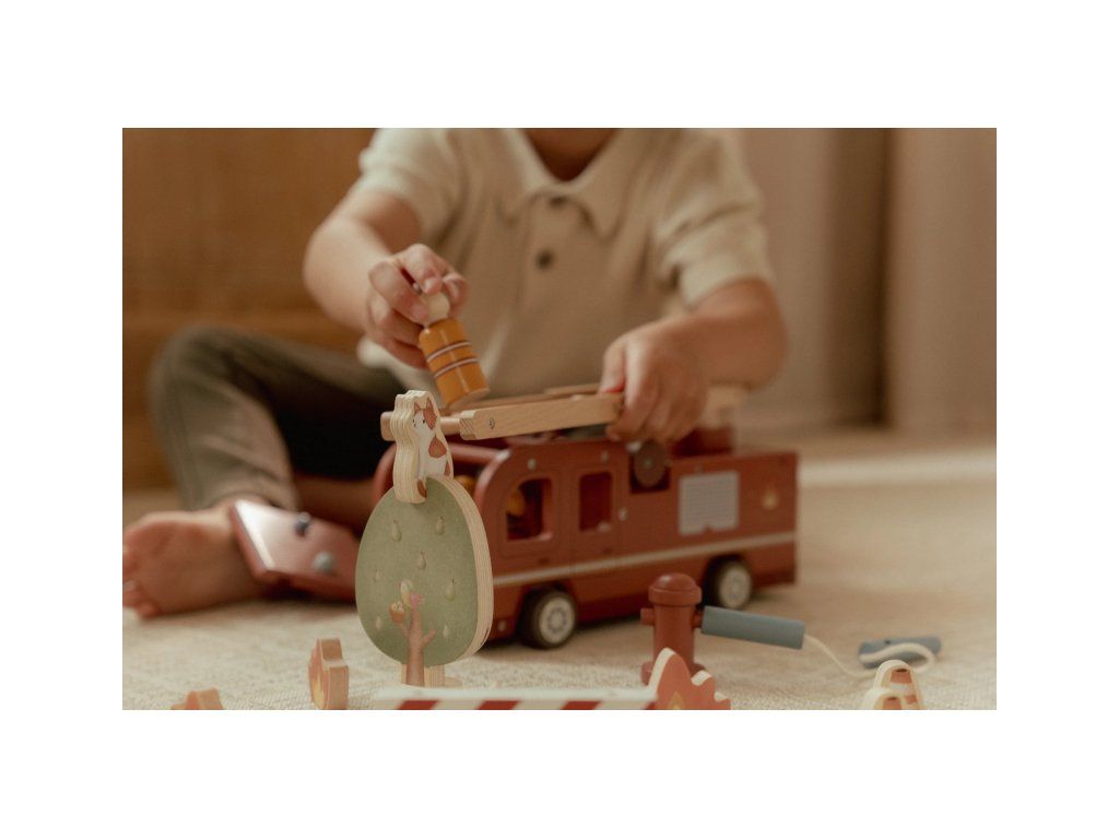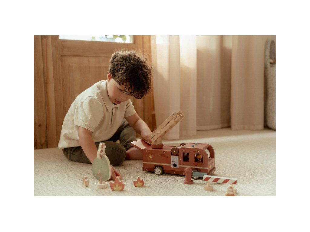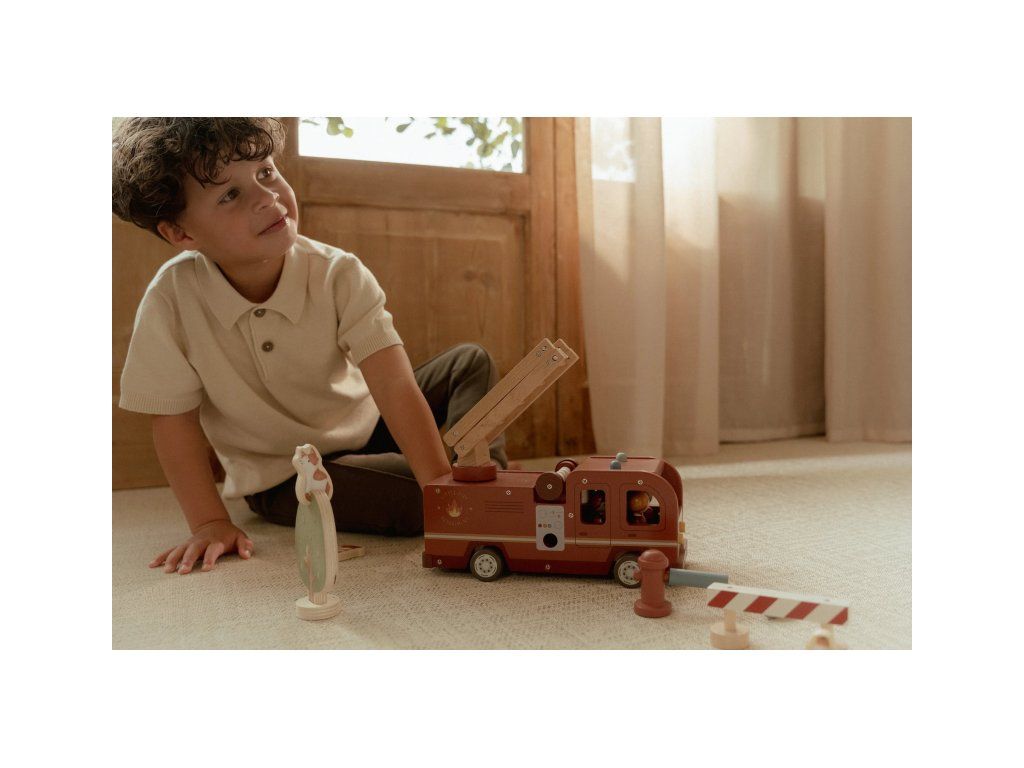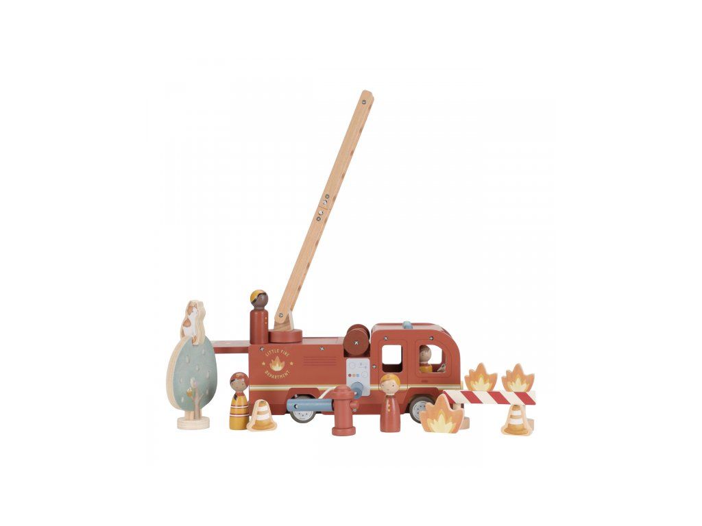 Hasičský nákladiak so štyrmi hasičmi je pripravený vyraziť do akcie! Niekedy je potrebné zachrániť mačičku zo stronu, inokedy uhasiť požiar alebo pomôcť polícii pri dopravnej nehode. Pre všetky tieto situácie je nákladiak vybavený výsuvným rebríkom a odnímateľnou hadicou, ktorú je možné pripojiť k hydrantu alebo priamo k vozidlu.