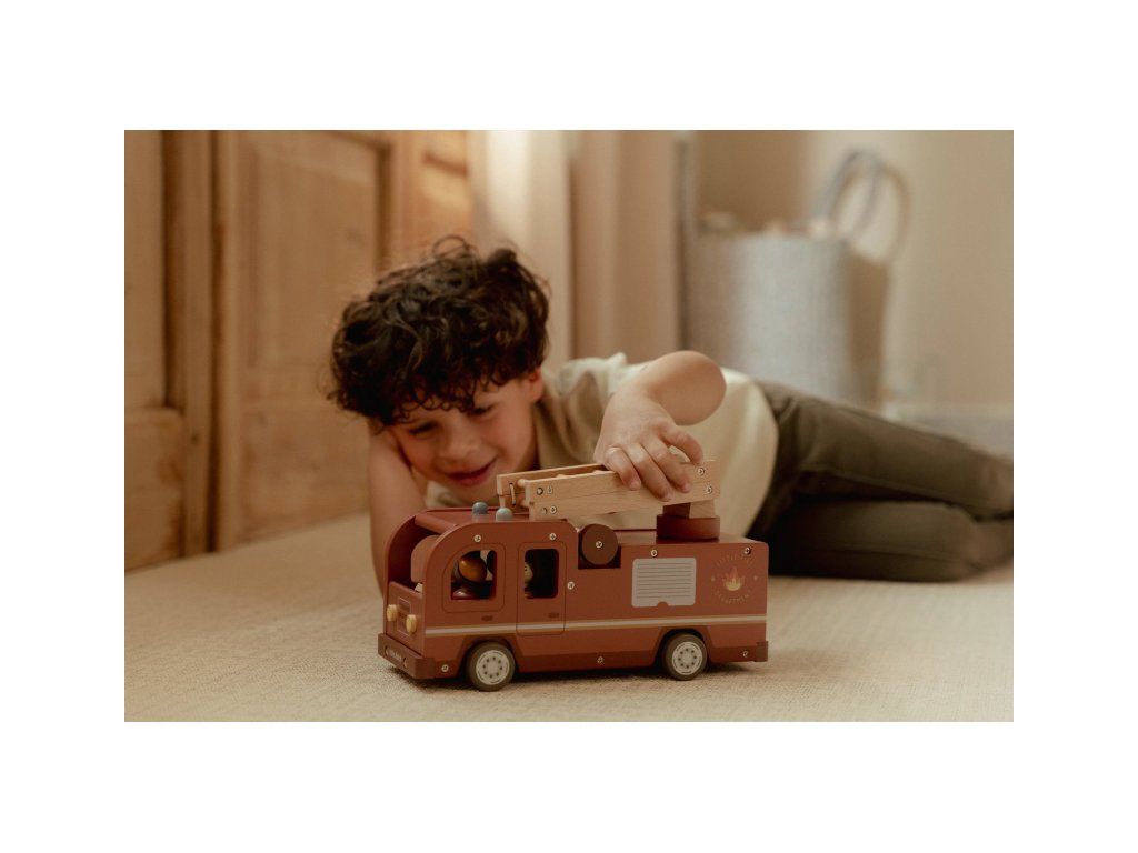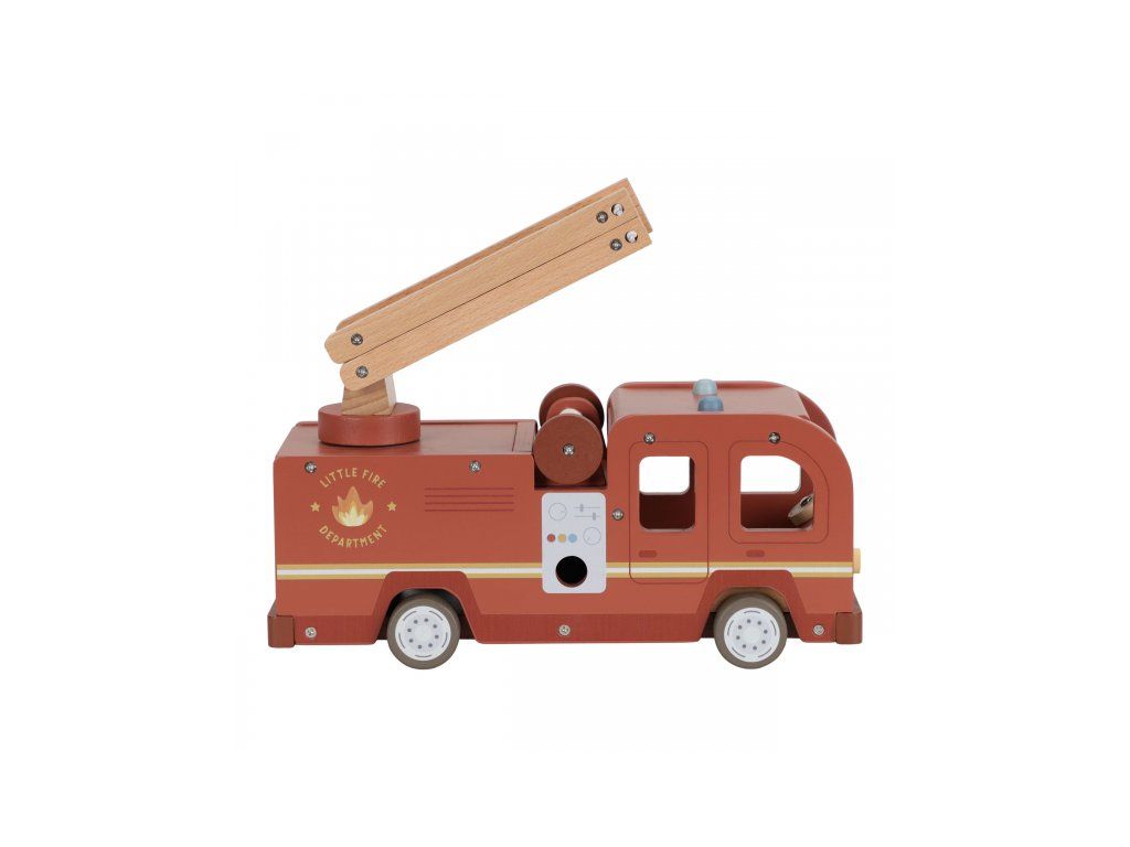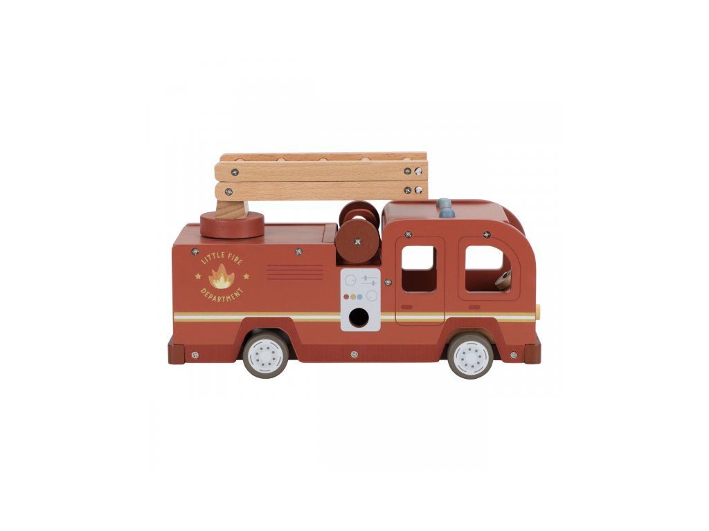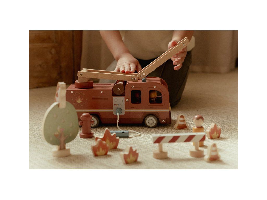 Hasičský nákladiak so štyrmi hasičmi je pripravený vyraziť do akcie! Niekedy je potrebné zachrániť mačičku zo stronu, inokedy uhasiť požiar alebo pomôcť polícii pri dopravnej nehode. Pre všetky tieto situácie je nákladiak vybavený výsuvným rebríkom a odnímateľnou hadicou, ktorú je možné pripojiť k hydrantu alebo priamo k vozidlu.