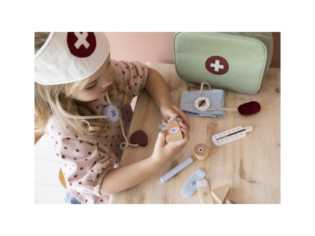 Vaši pacienti sa budú cítiť oveľa lepšie, keď budete mať po ruke túto lekársku tašku, pripravení zmerať teplotu, skontrolovať tep a krvný tlak či použiť stetoskop. Táto rola učí deti, že návšteva lekára nie je vôbec desivá vec!