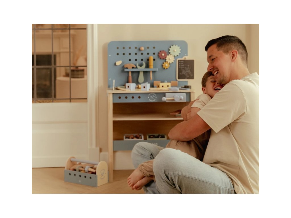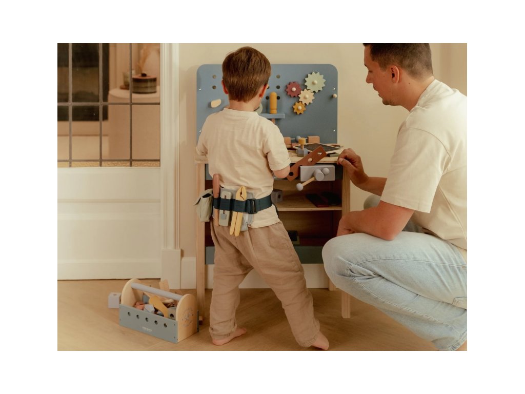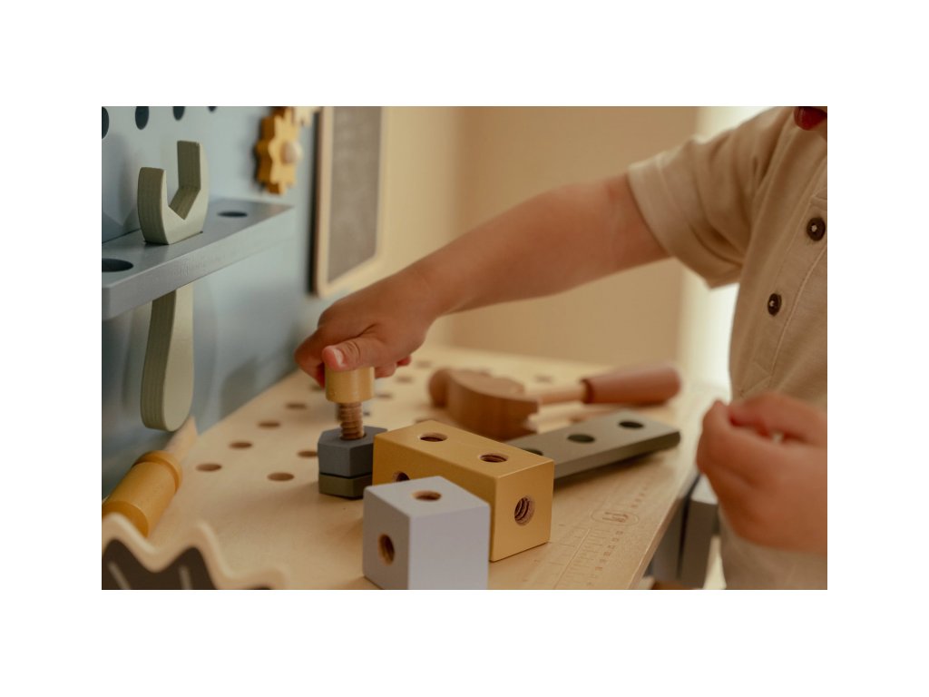Malé deti milujú napodobňovanie svojich rodičov pri ich činnostiach a tento ponk s náradím im umožní zostaviť a skonštruovať rôzne veci, rovnako ako to vedia ich rodičia! Aktivitou pri skrutkovaní a zostavovaní častí dohromady a ich opätovnému rozpojovaniu sa učia jemnej motorike a sústredení, kreativite a predstavivosti. Skvelý spôsob, ako deťom ponúknuť kreatívny priestor na tvorenie a objavovanie.