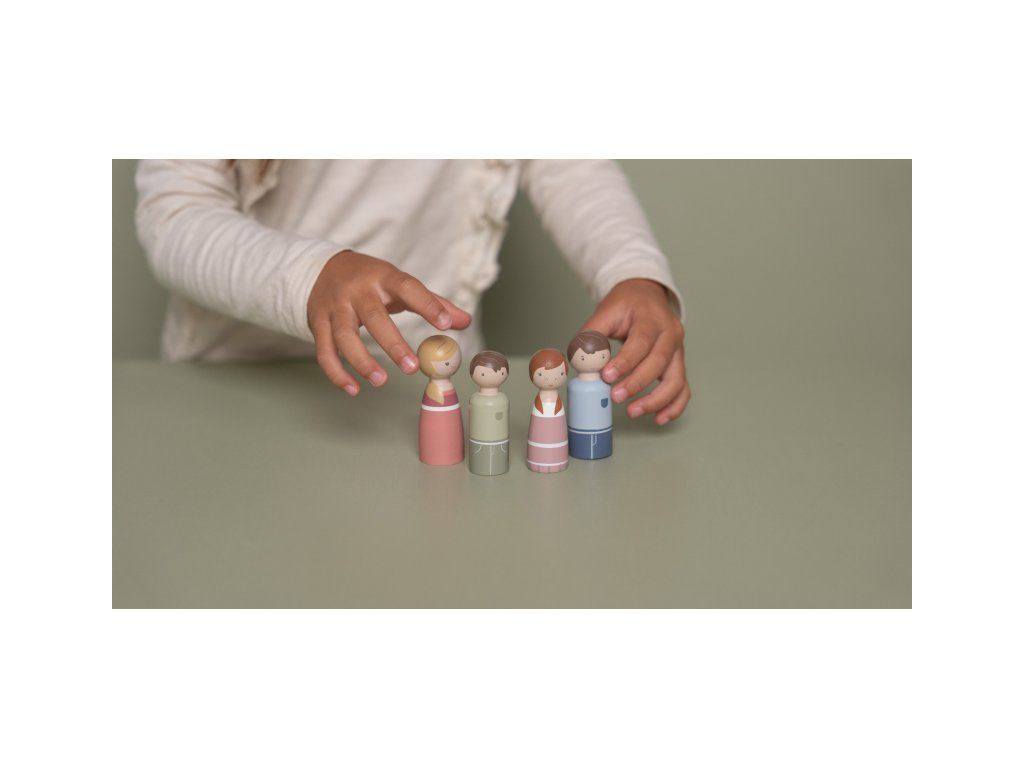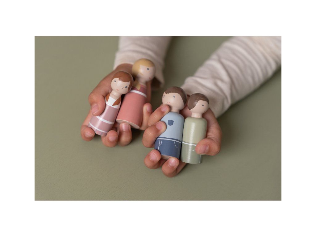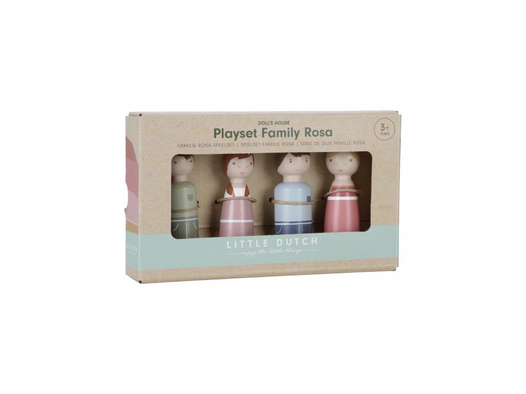 Sada drevených bábik, ktorú tvorí rodina mamičky Rosy, je ideálnym doplnkom k drevenému domčeku pre bábiky Little Dutch.