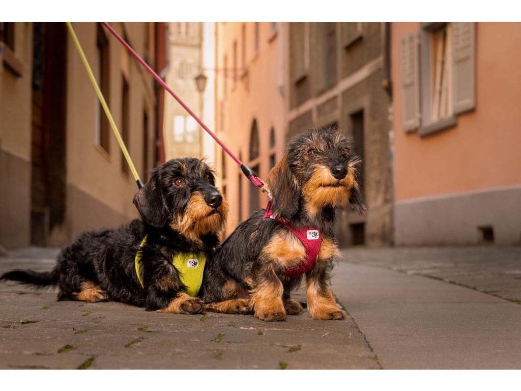 Ľahký, pohodlný postroj pre malých a stredne veľkých psov. Vodítko a postroj sa dajú pripnúť jednou rukou pomocou spony. Vysokopevný materiál spony, ktorý vydrží ťahové zaťaženie až do 100 kg. Táto spona eliminuje „cvakavý“ zvuk D-krúžkov. Výrazne zlepšená ergonómia postroju a optimalizované nosenie vďaka novému vzoru a novej veľkostnej stupnici.Postroj je vyrobený z ľahkého vzdušného materiálu Air-Mesh pre pohodlné nosenie. Možnosť nastavenia veľkosti postroja pomocou suchého zipsu. Postroj je vyrobený tak, aby došlo k optimálnemu rozloženiu napätia a aby nedochádzalo k poraneniu krku. Polstrovaná pracka zabezpečuje, aby sa srsť nezachytávala ani nedráždila.