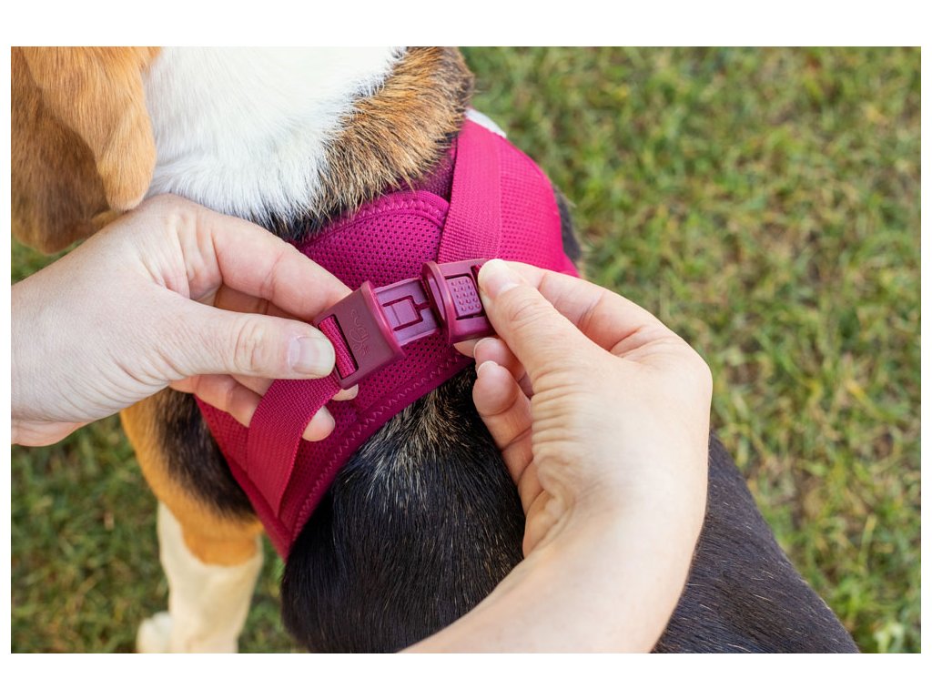 Ľahký, pohodlný postroj pre malých a stredne veľkých psov. Vodítko a postroj sa dajú pripnúť jednou rukou pomocou spony. Vysokopevný materiál spony, ktorý vydrží ťahové zaťaženie až do 100 kg. Táto spona eliminuje „cvakavý“ zvuk D-krúžkov. Výrazne zlepšená ergonómia postroju a optimalizované nosenie vďaka novému vzoru a novej veľkostnej stupnici.Postroj je vyrobený z ľahkého vzdušného materiálu Air-Mesh pre pohodlné nosenie. Možnosť nastavenia veľkosti postroja pomocou suchého zipsu. Postroj je vyrobený tak, aby došlo k optimálnemu rozloženiu napätia a aby nedochádzalo k poraneniu krku. Polstrovaná pracka zabezpečuje, aby sa srsť nezachytávala ani nedráždila.