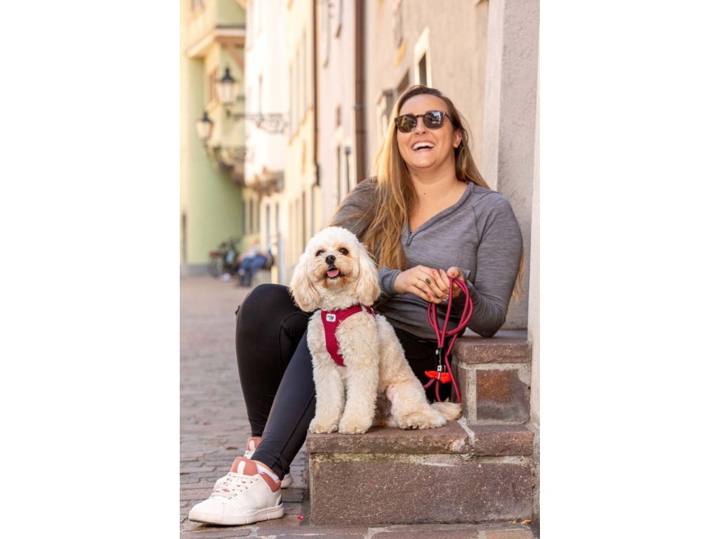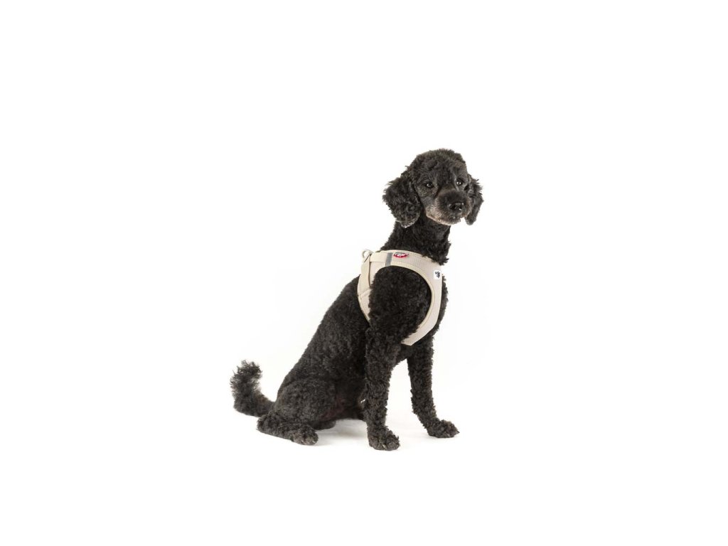 Ľahký, pohodlný postroj pre malých a stredne veľkých psov. Vodítko a postroj sa dajú pripnúť jednou rukou pomocou spony. Vysokopevný materiál spony, ktorý vydrží ťahové zaťaženie až do 100 kg. Táto spona eliminuje „cvakavý“ zvuk D-krúžkov. Výrazne zlepšená ergonómia postroju a optimalizované nosenie vďaka novému vzoru a novej veľkostnej stupnici.Postroj je vyrobený z ľahkého vzdušného materiálu Air-Mesh pre pohodlné nosenie. Možnosť nastavenia veľkosti postroja pomocou suchého zipsu. Postroj je vyrobený tak, aby došlo k optimálnemu rozloženiu napätia a aby nedochádzalo k poraneniu krku. Polstrovaná pracka zabezpečuje, aby sa srsť nezachytávala ani nedráždila.
