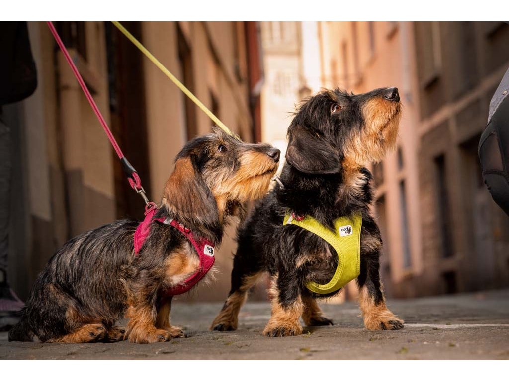 Ľahký, pohodlný postroj pre malých a stredne veľkých psov. Vodítko a postroj sa dajú pripnúť jednou rukou pomocou spony. Vysokopevný materiál spony, ktorý vydrží ťahové zaťaženie až do 100 kg. Táto spona eliminuje „cvakavý“ zvuk D-krúžkov. Výrazne zlepšená ergonómia postroju a optimalizované nosenie vďaka novému vzoru a novej veľkostnej stupnici.Postroj je vyrobený z ľahkého vzdušného materiálu Air-Mesh pre pohodlné nosenie. Možnosť nastavenia veľkosti postroja pomocou suchého zipsu. Postroj je vyrobený tak, aby došlo k optimálnemu rozloženiu napätia a aby nedochádzalo k poraneniu krku. Polstrovaná pracka zabezpečuje, aby sa srsť nezachytávala ani nedráždila.