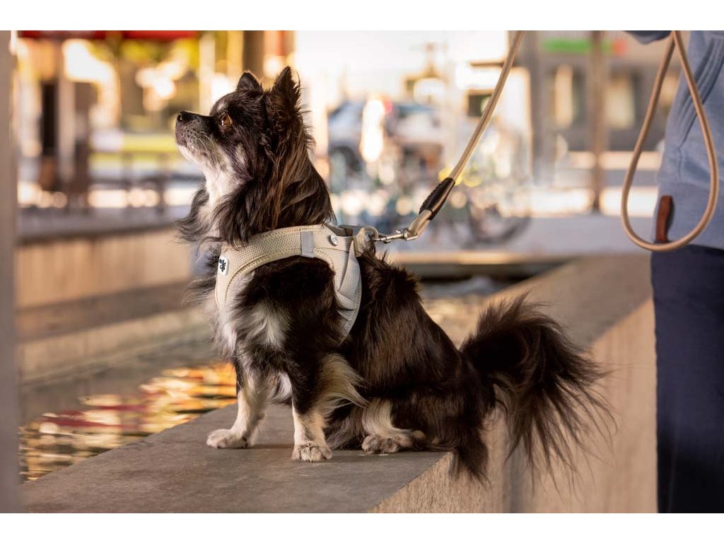 Ľahký, pohodlný postroj pre malých a stredne veľkých psov. Vodítko a postroj sa dajú pripnúť jednou rukou pomocou spony. Vysokopevný materiál spony, ktorý vydrží ťahové zaťaženie až do 100 kg. Táto spona eliminuje „cvakavý“ zvuk D-krúžkov. Výrazne zlepšená ergonómia postroju a optimalizované nosenie vďaka novému vzoru a novej veľkostnej stupnici.Postroj je vyrobený z ľahkého vzdušného materiálu Air-Mesh pre pohodlné nosenie. Možnosť nastavenia veľkosti postroja pomocou suchého zipsu. Postroj je vyrobený tak, aby došlo k optimálnemu rozloženiu napätia a aby nedochádzalo k poraneniu krku. Polstrovaná pracka zabezpečuje, aby sa srsť nezachytávala ani nedráždila.