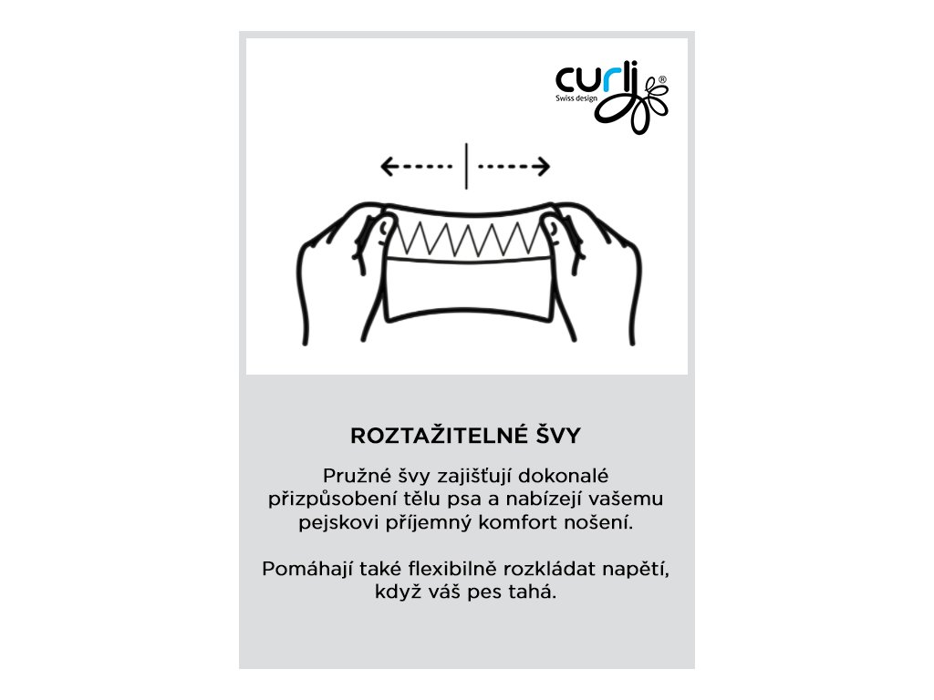 - Optimálne rozloženie ťahu a odľahčenie tlaku vďaka elastickým švom, ktoré sa dokonalé prispôsobujú telu vášho psa a poskytujú mu tak príjemný pocit pri nosení.