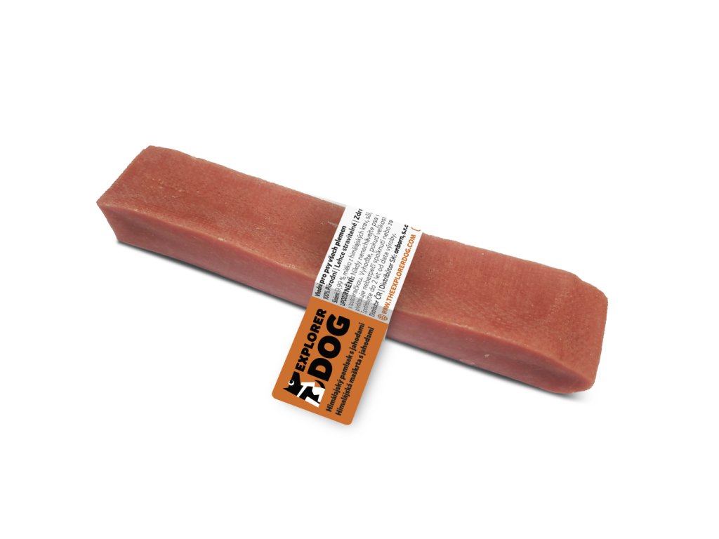 Dentálne tyčinky zo syra s jahodami sú tvrdé, zdravé a prirodzené maškrty pre psov, ktoré podporujú dentálnu hygienu a pomáhajú odstraňovať zubný kameň. Tieto prírodné syrové maškrty sú ľahko stráviteľné, neobsahujú laktózu, lepok ani konzervačné látky. Vďaka svojmu zloženiu a tvrdosti sú ideálne pre každého psa, bez ohľadu na vek, veľkosť alebo plemeno.Himalájske syry, z ktorých sú tieto maškrty vyrobené, pochádzajú z mlieka voľne chovaných himalájskych kráv. Proces výroby začína hodinovým varením mlieka, aby sa odstránil všetok tuk a zaistila sa pasterizácia. Potom sa pridáva trocha soli a limetkovej šťavy (celkom len 0,01 %) na zrážanie. Nasleduje lisovanie syra po dobu 2-3 dní, aby sa odstránila vlhkosť. Bloky syra sú potom nakrájané na primerane veľké kusy a sušené v udiarni po dobu 20-30 dní, čo im dodáva tvrdosť a jemnú, dymovú chuť.