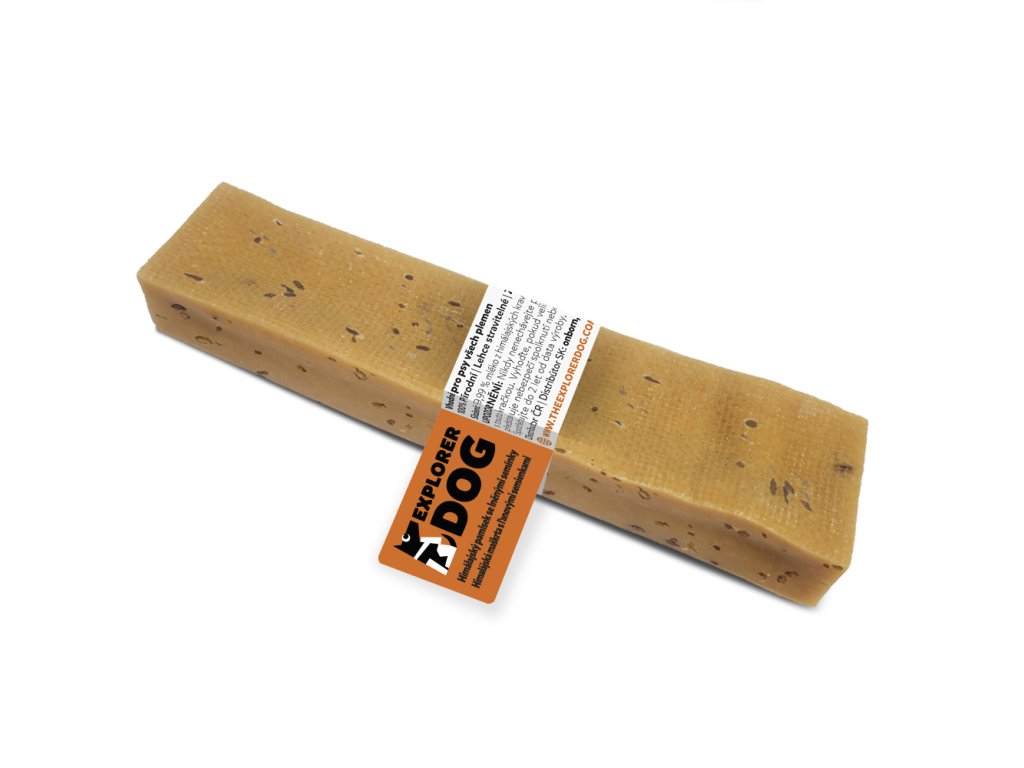 Dentálne tyčinky zo syra s ľanovými semienkami, zdravé a prirodzené maškrty pre psov, ktoré podporujú dentálnu hygienu a pomáhajú odstraňovať zubný kameň. Tieto prírodné syrové maškrty sú ľahko stráviteľné, neobsahujú laktózu, lepok ani konzervačné látky. Vďaka svojmu zloženiu a tvrdosti sú ideálne pre každého psa, bez ohľadu na vek, veľkosť alebo plemeno.Himalájske syry, z ktorých sú tieto maškrty vyrobené, pochádzajú z mlieka voľne chovaných himalájskych kráv. Proces výroby začína hodinovým varením mlieka, aby sa odstránil všetok tuk a zaistila sa pasterizácia. Potom sa pridáva trocha soli a limetkovej šťavy (celkom len 0,01 %) na zrážanie. Nasleduje lisovanie syra po dobu 2-3 dní, aby sa odstránila vlhkosť. Bloky syra sú potom nakrájané na primerane veľké kusy a sušené v udiarni po dobu 20-30 dní, čo im dodáva tvrdosť a jemnú, dymovú chuť.