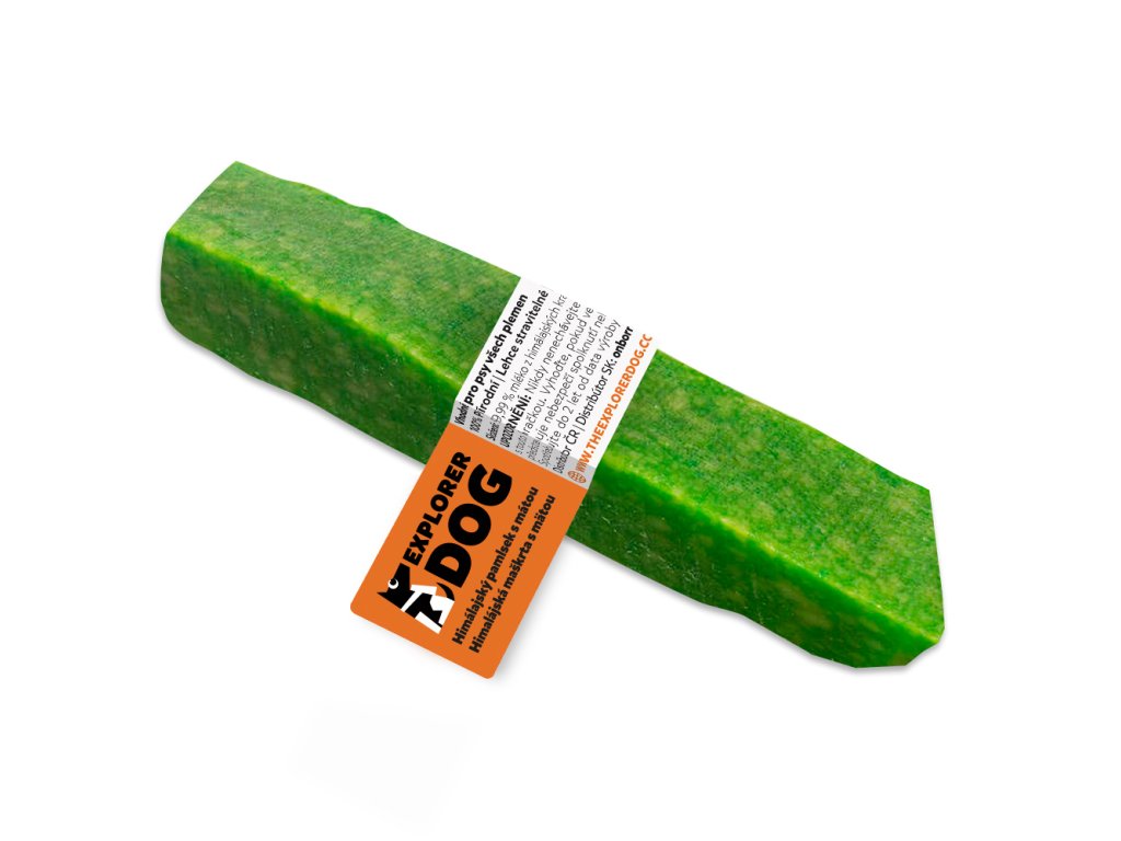 Dentálne tyčinky zo syra s mätou, zdravé a prirodzené maškrty pre psov, ktoré podporujú dentálnu hygienu a pomáhajú odstraňovať zubný kameň. Tieto prírodné syrové maškrty sú ľahko stráviteľné, neobsahujú laktózu, lepok ani konzervačné látky. Vďaka svojmu zloženiu a tvrdosti sú ideálne pre každého psa, bez ohľadu na vek, veľkosť alebo plemeno.Himalájske syry, z ktorých sú tieto maškrty vyrobené, pochádzajú z mlieka voľne chovaných himalájskych kráv. Proces výroby začína hodinovým varením mlieka, aby sa odstránil všetok tuk a zaistila sa pasterizácia. Potom sa pridáva trocha soli a limetkovej šťavy (celkom len 0,01 %) na zrážanie. Nasleduje lisovanie syra po dobu 2-3 dní, aby sa odstránila vlhkosť. Bloky syra sú potom nakrájané na primerane veľké kusy a sušené v udiarni po dobu 20-30 dní, čo im dodáva tvrdosť a jemnú, dymovú chuť.