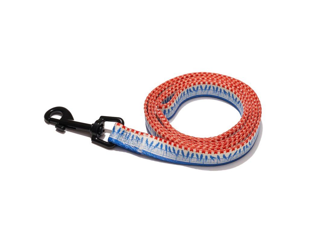 Štýlové vodítko pre vášho psíka. Vodítko je vyrobené z mäkkého a odolného polyesteru. Je husto tkané, aby bolo jemné a príjemné na chytenie do ruky. Karabína a krúžok sú vyrobené zo zliatiny zinku, sú extrémne pevné a odolné voči korózii. Vodítko je možné bezpečne prať v práčke bez poškodenia farieb.- Mäkký a odolný materiál vodítka
