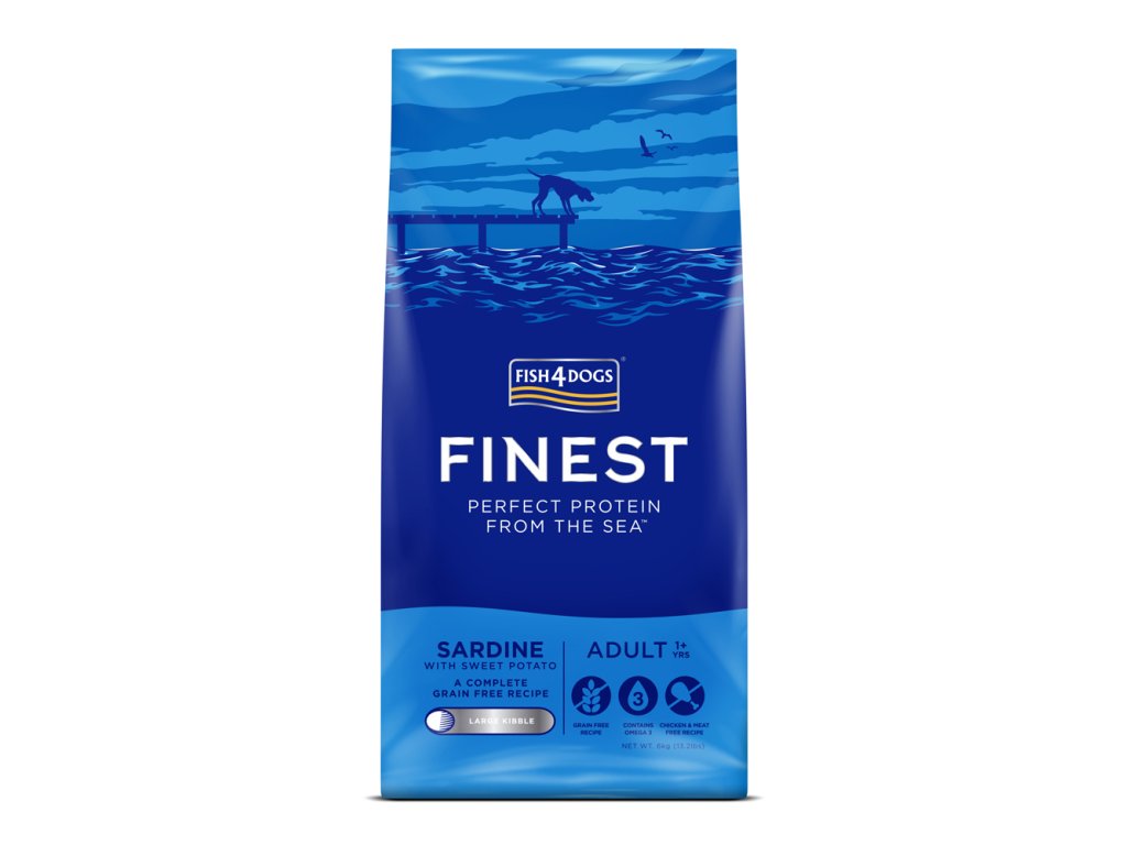 FISH4DOGS Granule veľké pre dospelých psov Finest sardínka so sladkými zemiakmi 6kg, 1+