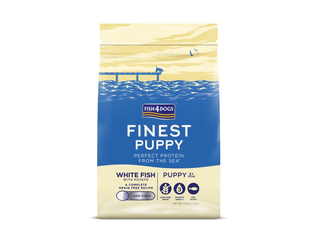 FISH4DOGS Granule veľké pre šteniatka Finest biela ryba so zemiakmi 1,5kg, 2m+