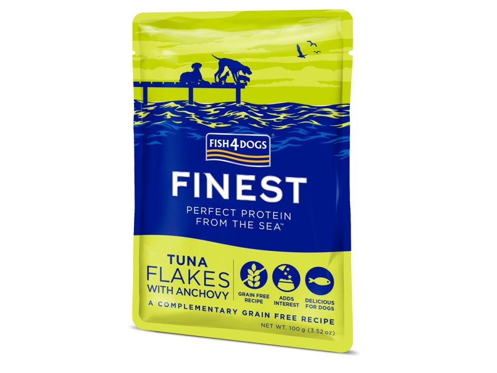 FISH4DOGS Kapsička pre psov Finest tuniakové kúsky s ančovičkami 100g