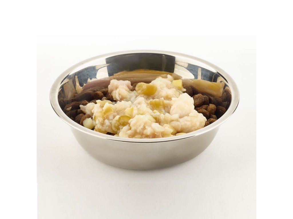 Konzerva pre psov s bielou rybou, sladkými zemiakmi a zelenými fazuľkami je vyrobená z kvalitných rýb a zeleniny. Lahodná a chutná maškrta. Bez obsahu obilnín, bez pridaných umelých farbív a príchutí.Zloženie Biela ryba (50 %), Zelená fazuľa (8 %), Sladké zemiaky (8 %), Tapiokový škrob.