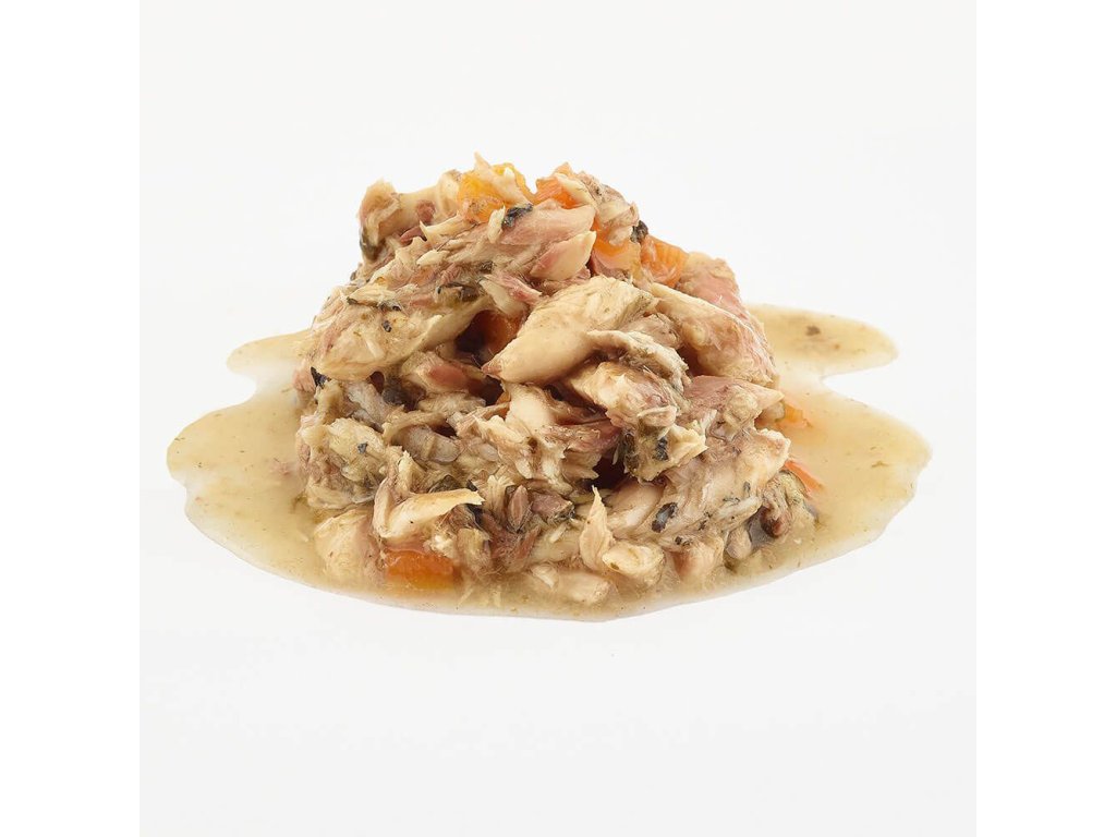 Zloženie Makrela (50%), Špenát (8%), Mrkva (8%), Tapiokový škrob.