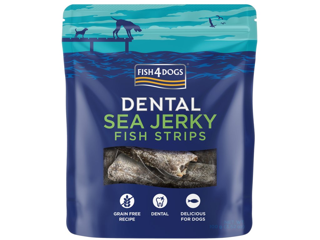 FISH4DOGS Maškrty pre psov DENTAL SEA morská ryba - prúžky 100 g