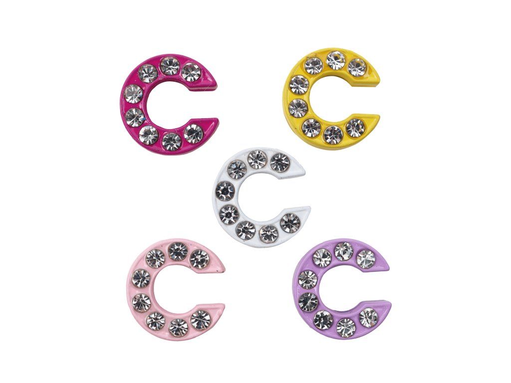 Písmeno C Prívesok na náramok 10 ks Ozdob si náramok svojim menom! Farebný prívesok na náramok s kamienkami písmeno C švédskej značky Nojomojo krásne doplní 8mm náramky rovnakej značky. Farby písmeniek sú vyberané náhodne, buď v bielo, žltej, svetlo fialovej, svetlo ružovej alebo fuchsiovej farbe. Deti si tak vytvoria jedinečný personalizovaný náramok s menom as ďalšími ozdobami. Vyjadrijú tak svoj štýl a môžu ozdoby meniť podľa ľubovôle.Prívesok na náramok z bezpečných materiálov Trblietavý prívesok písmeno C na detský náramok s menom Nojomojo je vyrobený z bezpečných materiálov bez prítomnosti niklu, kadmia či olova. Pre deti je úplne bezpečný. Nojomojo je švédska značka zameriavajúca sa na návrh a produkciu hravých, kreatívnych a nezávadných doplnkov a ďalších vecí pre deti.Balenie 10 ksDodatočné parametre
