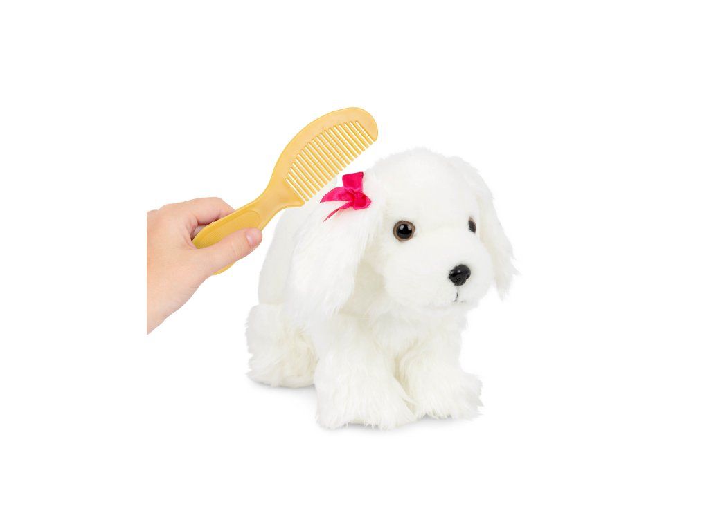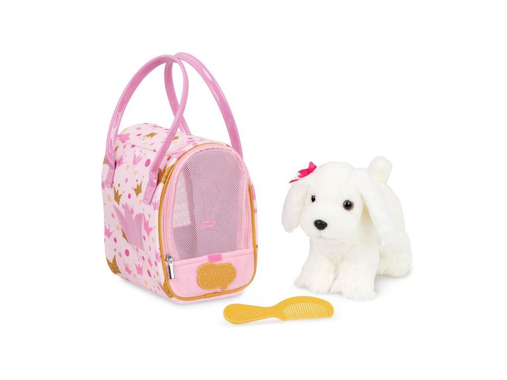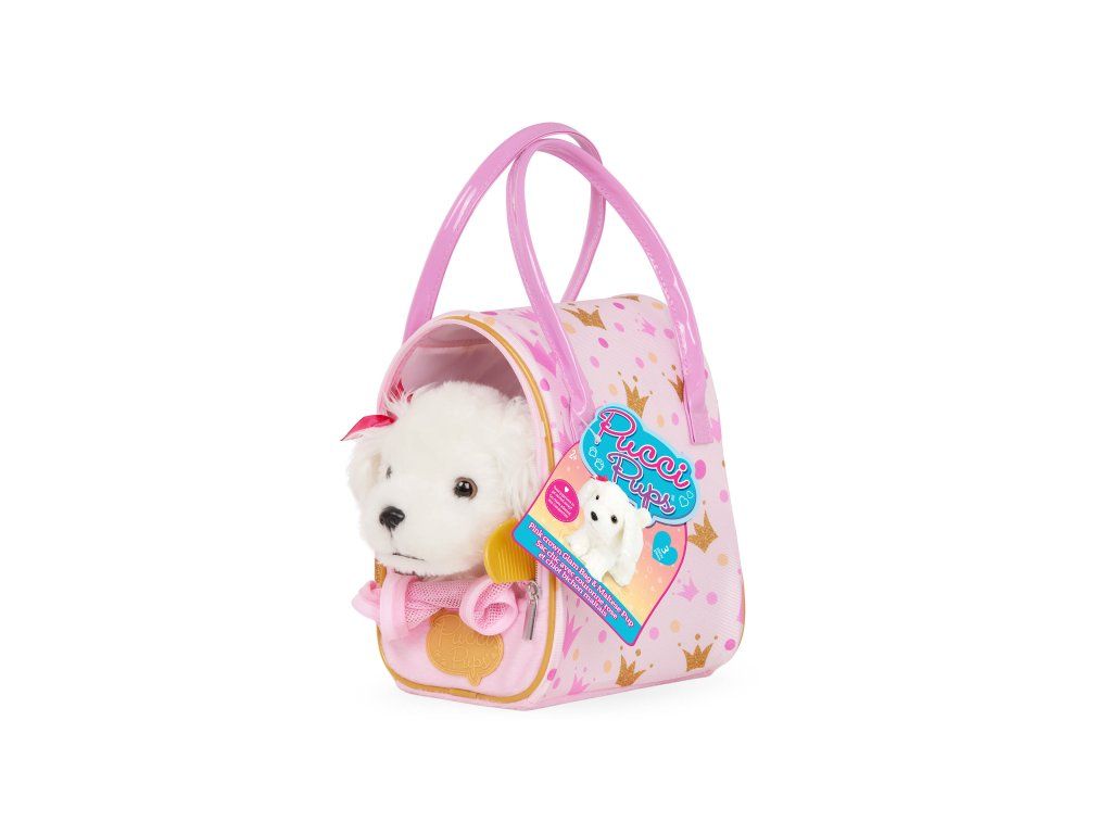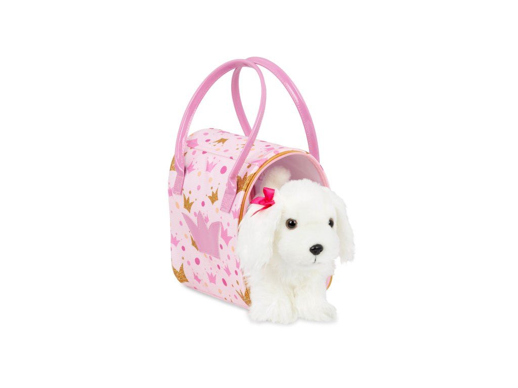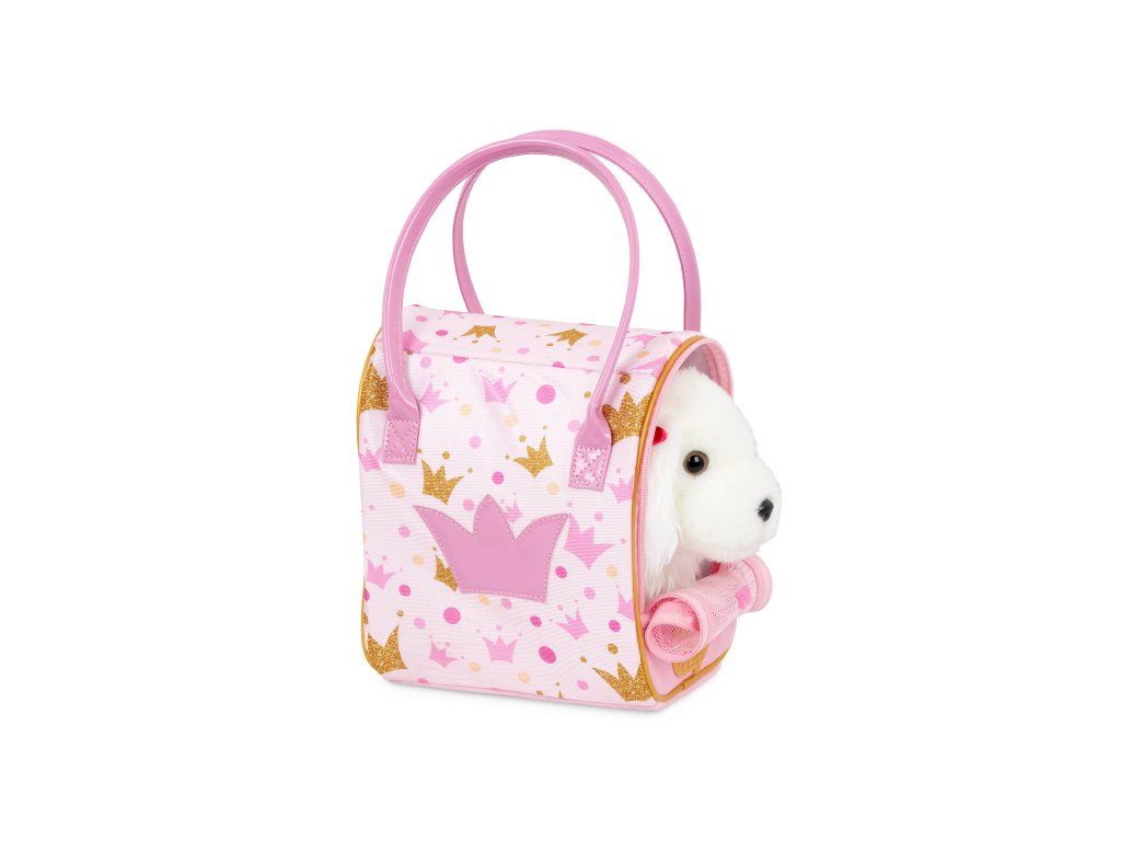Rozkošné plyšové šteňa v taške s krásnou potlačou je vždy pripravené na maznanie aj na prechádzku. Miluje vyčesávanie svojej hebkej srsti hrebienkom a vďaka taške si ho vaše dieťa môže vziať kamkoľvek. Taška má priehľadnú prednú stenu zo sieťoviny s otváraním na zips, aby šteniatko pri prenášaní videlo na svet.