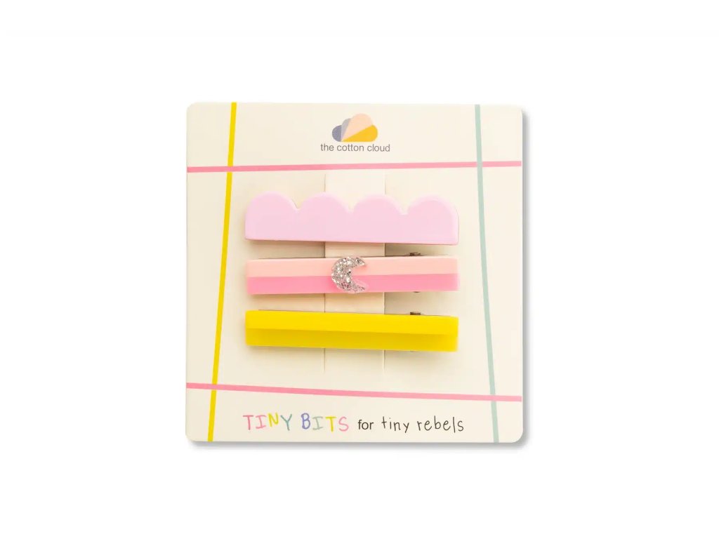 Značka COTTON CLOUD prináša zábavu do vlasových doplnkov! Majte vlásky svojho dieťatka pod kontrolou s novou radou roztomilých sponiek do vlasov. Vlasové sponky COTTON CLOUD, inšpirované ikonickými vzormi, sú ideálne na každú príležitosť. Materiál: acetát Dizajn vyrobený v Nemecku.Dodatočné parametre