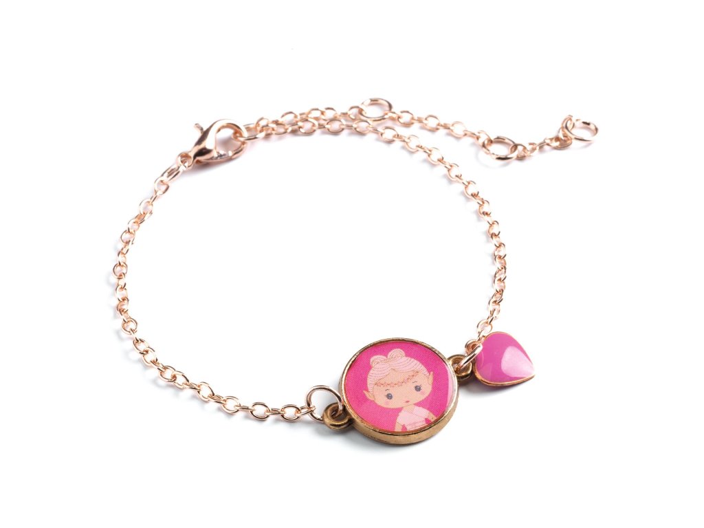 Tinyly náramok Elfe Srdiečko pre radosť: Tinyly náramok Elfe v romantickom štýleTinyly náramok Elfe je jemný detský náramok z kolekcie Tinyly. Na pozlátenej kovovej retiazke visí ilustrovaný medailónik s portrétom postavičky a k nemu ladiaca ozdôbka – romantický prívesok v tvare srdiečka.Srdiečko pôsobí nežne a romanticky – náramok je krásny drobný darček, ktorý sa hodí takmer ku všetkému. Vďaka nastaviteľnému zapínaniu sa dá veľkosť jednoducho prispôsobiť detskému zápästiu.Rýchly prehľad odporúčaný vek: od 4 rokov typ: detský náramok s medailónikom a príveskom materiál: kovová retiazka (pozlátený vzhľad), ilustrované prvky dĺžka retiazky: cca 18 cm veľkosť medailónika: Ø 13 mm balenie: darčekové kartónové puzdro s okienkomPrečo si ho deti zamilujú jemný šperk, ktorý pôsobí „dospelácky“, no stále hravo medailónik s postavičkou Tinyly – každý model má svoj príbeh praktické zapínanie – náramok sa dá prispôsobiť krásny tip na malý darček (oslava, odmena, „len tak“)Obsah balenia 1× náramok (kovová retiazka so zapínaním) 1× ilustrovaný medailónik 1× prívesok (romantický prívesok v tvare srdiečka)Technické parametre zapínanie: nastaviteľné (karabínka + očká) dĺžka retiazky: cca 18 cm medailónik: Ø 13 mm rozmery balenia: cca 9 × 9 × 0,2 cmDodatočné parametre