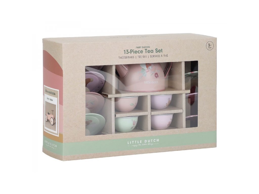 13-dielna sada je súčasťou dizajnovej kolekcie hračiek a doplnkov Little Dutch Fairy Garden inšpirovanej životom na záhrade.
