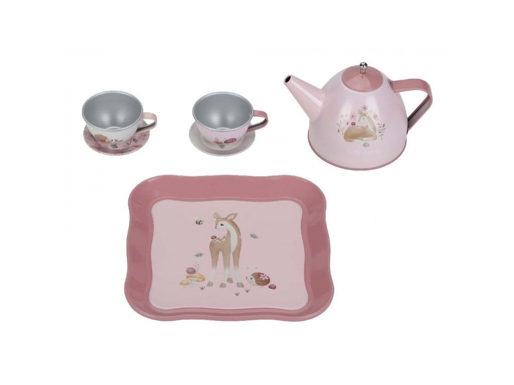 Čajový set je súčasťou dizajnovej kolekcie hračiek a doplnkov Little Dutch Fairy Garden inšpirovanej životom na záhrade.