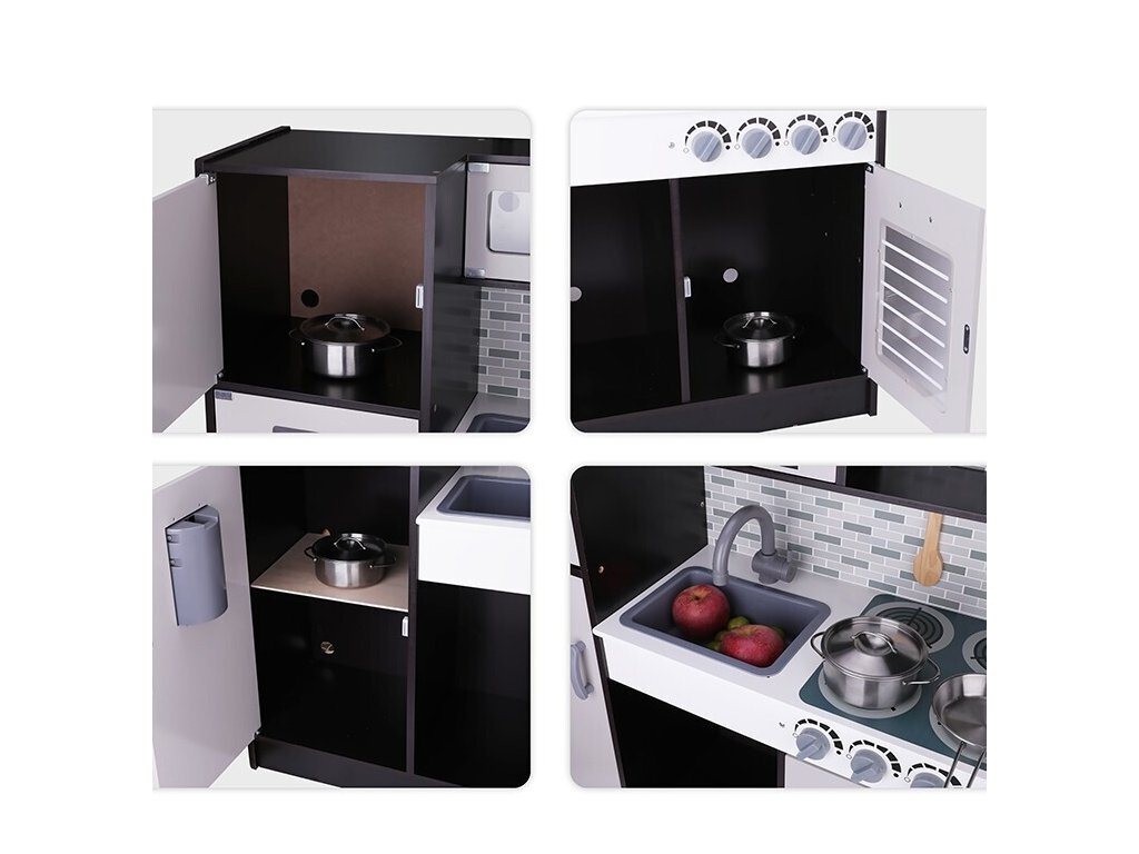 Drevená kuchynka Rozvíjajte fantáziu svojho dieťaťa s drevenou kuchynkou Drevená detská kuchynka je skvelou hračkou, ktorá prebúdza v deťoch fantáziu a kreatívne myslenie. Pri hre na malého šéfkuchára si deti osvojujú komunikačné schopnosti, učia sa pracovať samostatne aj v tíme a objavujú radosť zo starostlivosti o poriadok v kuchyni. Okrem prípravy lahodných "jedál" sa naučia organizovať svoj priestor, upratovať a starať sa o pomôcky, ktoré používajú. Táto realistická kuchynka pomáha rozvíjať zmysel pre zodpovednosť a podporuje sociálny rozvoj dieťaťa – a to všetko zábavnou a prirodzenou formou!Dodatočné parametre
