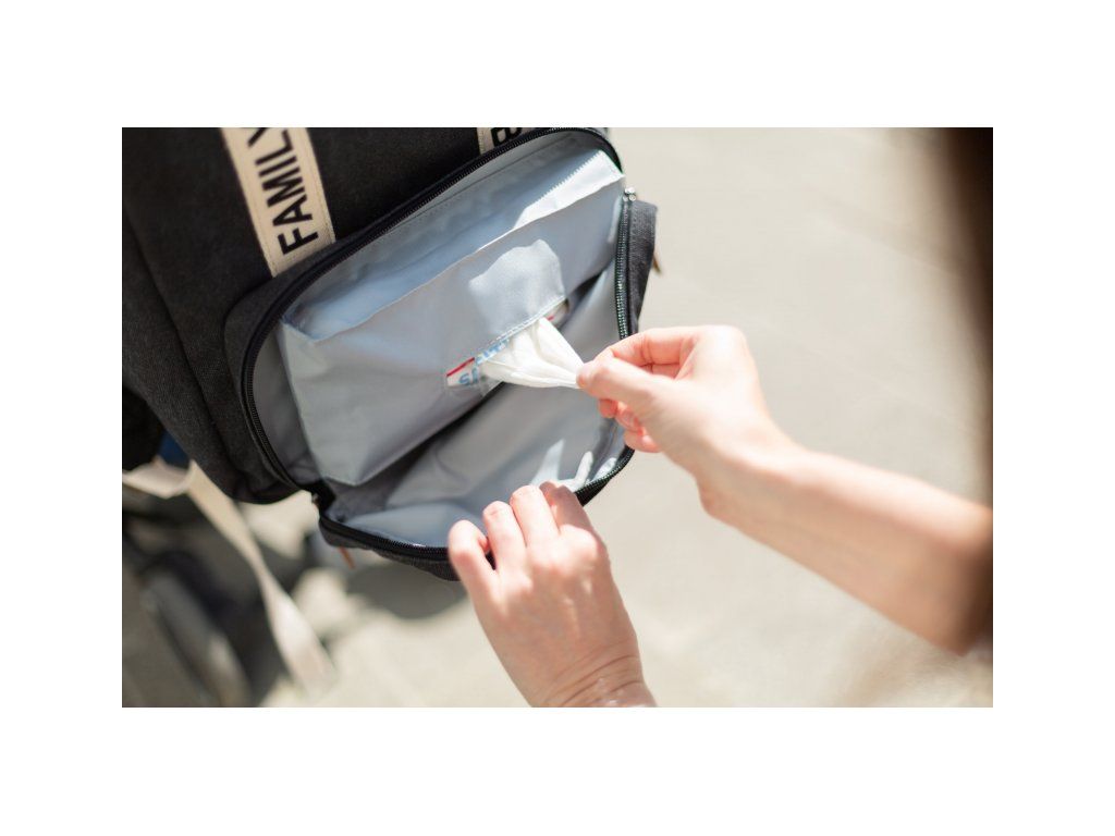 Súčasťou plecniaka je prebaľovacia podložka a termoizolačné vrecká na fľašu. Prehľadnú organizáciu obsahu batohu zaručuje množstvo vnútorných aj vonkajších vreciek a úchytov. Vďaka špeciálnemu vrecku pre vlhčené obrúsky sú obrúsky vždy okamžite po ruke pripravené na použitie. Úchyty na kočík umožňujú zavesenie batohu na rukoväť kočíka, úchyt na vyťahovaciu rukoväť kufra vám uľahčí cestovanie počas dovolenky.