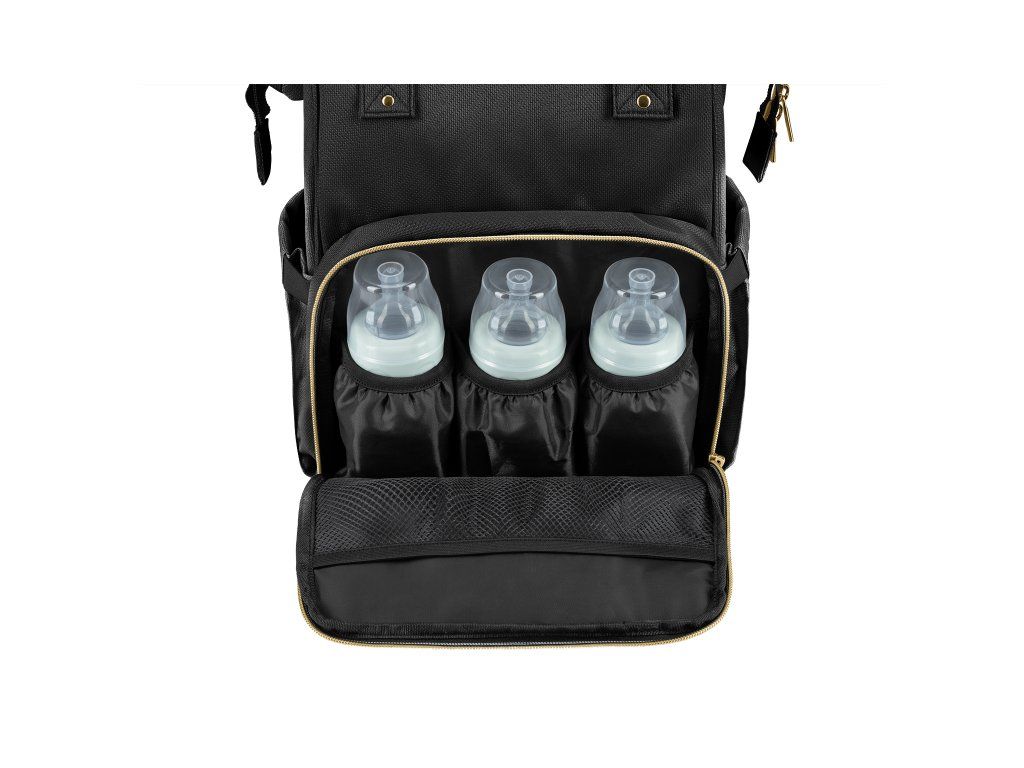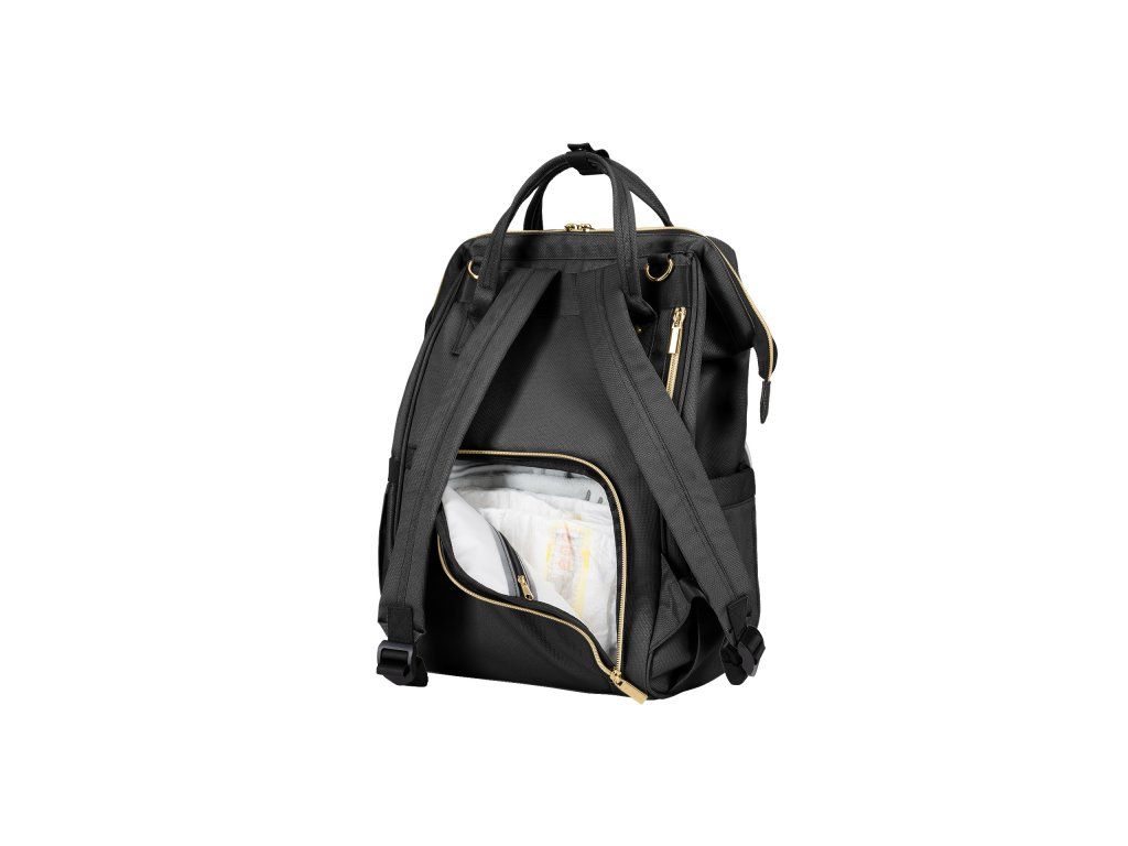 Vnútri batohu nájdete množstvo vreciek a priehradok aj vodeodolné vrecko na uloženie vlhkých predmetov. Široký spôsob otvárania batohu uľahčuje orientáciu v uloženom obsahu. Na vonkajšej strane nájdete vrecká s uzatváraním na zips aj vrecko na uloženie fľaše. Termoizolačné vrecká na fľaše pomáhajú udržať nápoje či mlieko dlhšiu dobu v optimálnej teplote. Súčasťou plecniaka je aj prebaľovacia podložka.