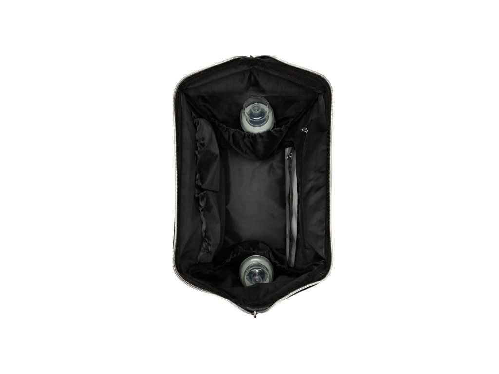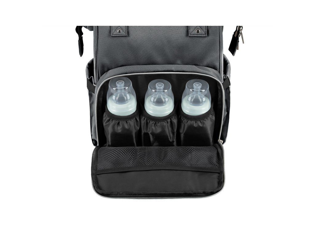Vnútri batohu nájdete množstvo vreciek a priehradok aj vodeodolné vrecko na uloženie vlhkých predmetov. Široký spôsob otvárania batohu uľahčuje orientáciu v uloženom obsahu. Na vonkajšej strane nájdete vrecká s uzatváraním na zips aj vrecko na uloženie fľaše. Termoizolačné vrecká na fľaše pomáhajú udržať nápoje či mlieko dlhšiu dobu v optimálnej teplote. Súčasťou plecniaka je aj prebaľovacia podložka.