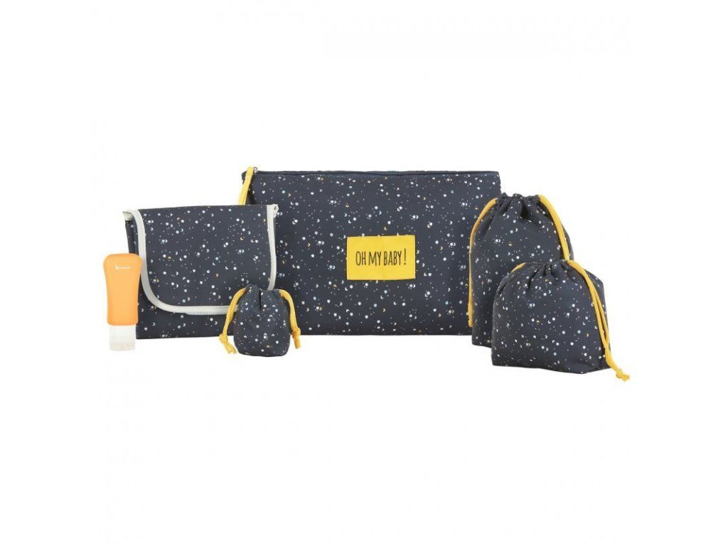 - sada obsahuje: 1 uzatvárateľné veľké puzdro s vreckami + 3 menšie púzdra + 1 tubu + 1 prebaľovaciu podložku