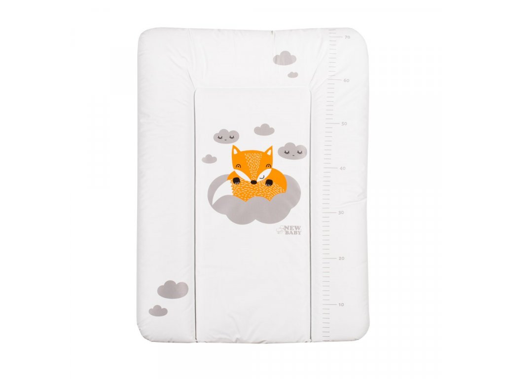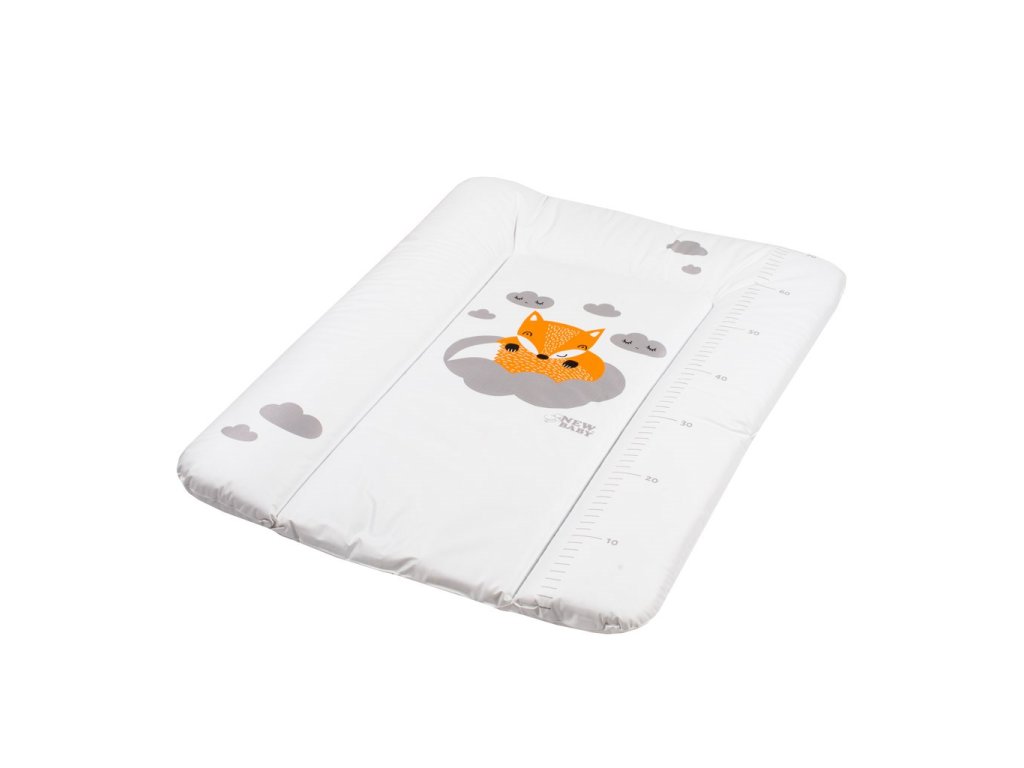 Praktická tvarovaná prebaľovacia podložka s moderným dizajnom New Baby Líška z nepremokavého, plastového materiálu s obrázkom líšky a obláčikov. Podložku možno použiť na komode či inom mieste na prebaľovanie. Rozmer: cca 70x50 cm, hrúbka cca 4 cm.