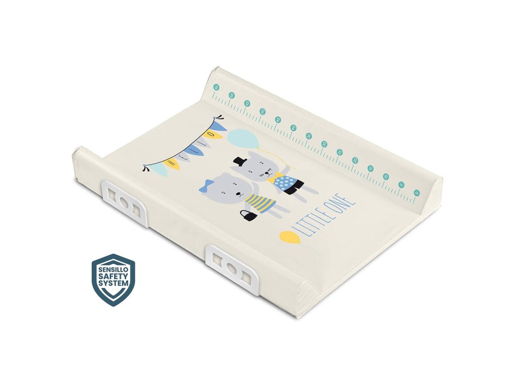 Mäkký prebaľovací nadstavec Sensillo s profilovanými okrajmi je vyrobený z kvalitnej certifikovanej fólie, ktorá neobsahuje žiadne škodlivé látky a je citlivá k najjemnejšiej detskej pokožke. Je vyplnený molitanom a doplnený o tvrdú spodnú dosku, ktorá umožňuje inštaláciu na detskú postieľku. Prebaľovací pult sa vyznačuje inovatívnym bezpečnostným systémom Sensillo Safety System, ktorý zabraňuje vypadnutiu dieťaťa vďaka dodatočným bočným výstuhám. Nástavec má príjemné pastelové farby, je na hornej strane zdobený veselým obrázkom a je veľmi praktickým pomocníkom v starostlivosti o bábätko.