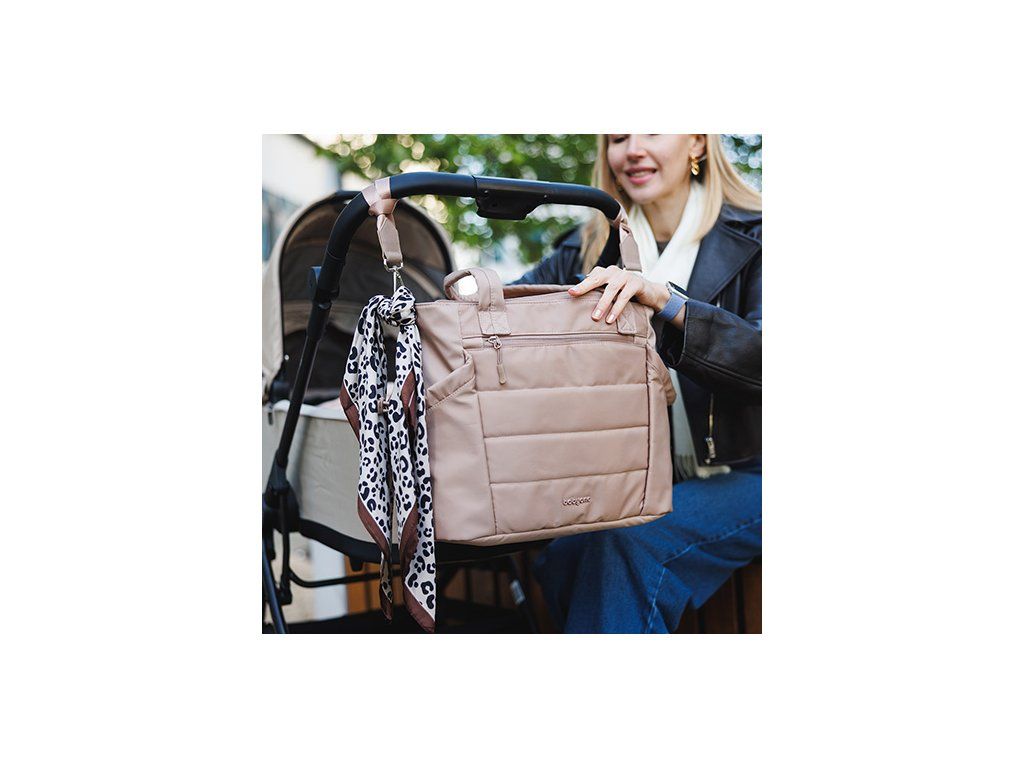 - DRŽADLÁ: Vybavili sme ju tromi typmi rukovätí: odnímateľné bočné popruhy pre zavesenie na kočík, dlhý, nastaviteľný ramenný popruh a rukoväte. Dlhšie rukoväte vám umožnia pohodlne prehodiť tašku cez rameno.