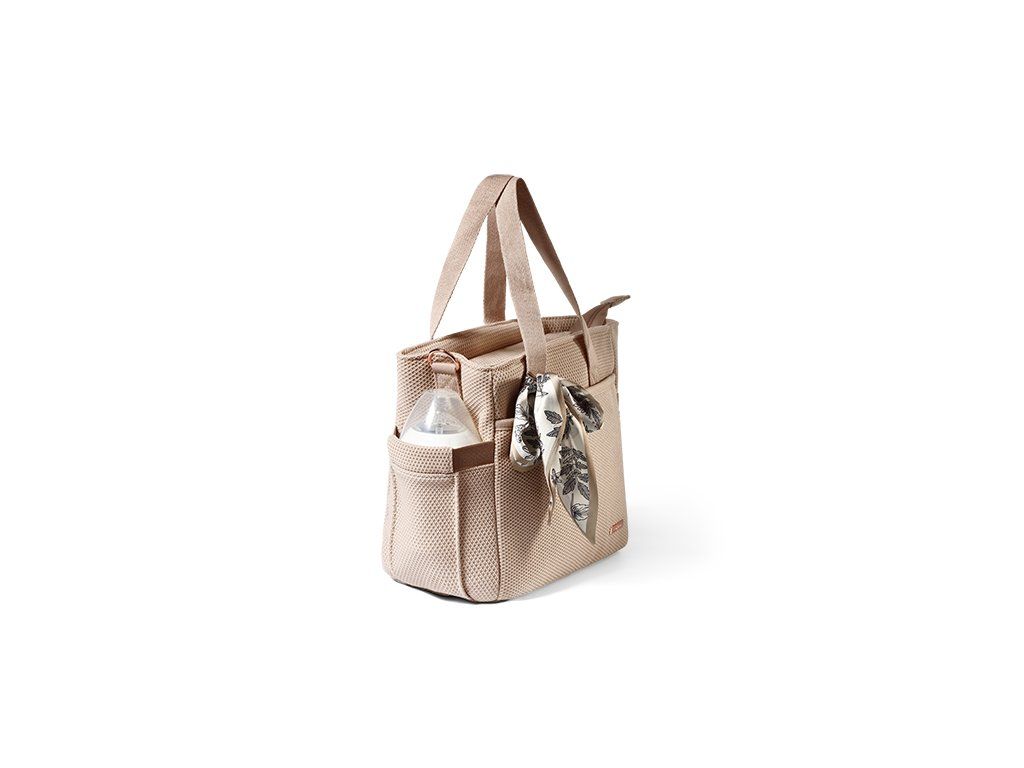 - Taška má dlhý popruh, vďaka ktorému ju môžete pohodlne nosiť na ramene. Pomocou šikovných držiakov tašku ľahko pripevníte ku kočíku alebo udržíte v ruke.