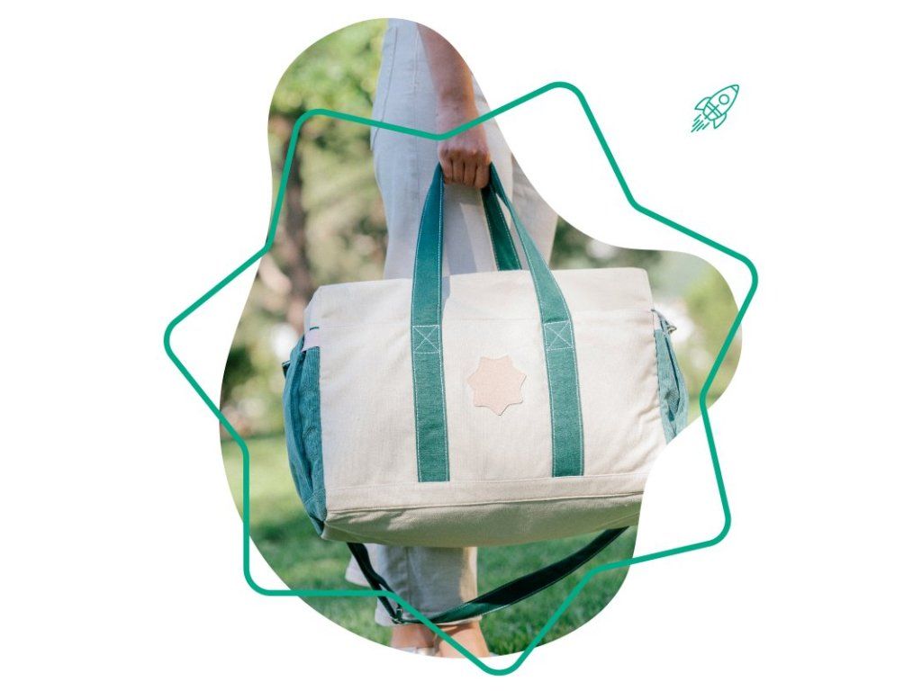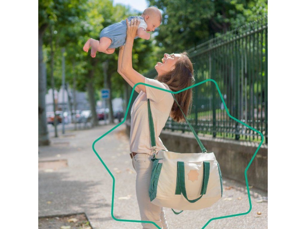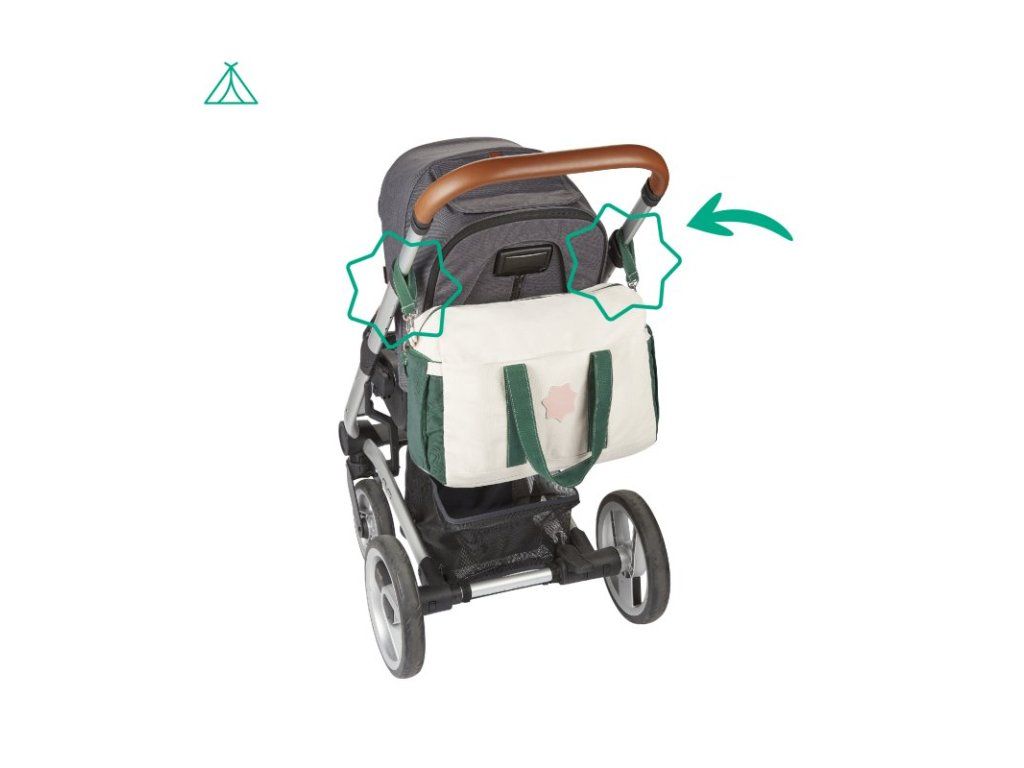 - možno nosiť rôznymi spôsobmi: v ruke, na ramene, cez telo alebo na kočíku (dodáva sa vrátane klipov na kočík)