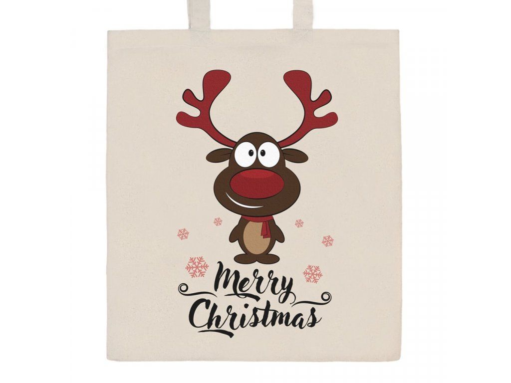 Bavlnená nákupná taška prírodná s potlačou New Baby Merry Christmas - 36988