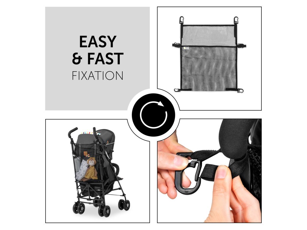 Táto flexibilná nákupná sieťová taška na kočíky je ideálna na všetky veci, ktoré chcete mať na výlete vždy po ruke. Plienky, oblečenie alebo desiata, všetko sa jednoducho uskladní vďaka veľkým otvorom. Aj malé nákupy nájdu v tejto univerzálnej sieťovej taške svoje miesto.