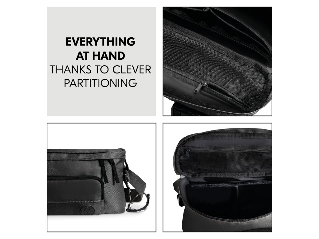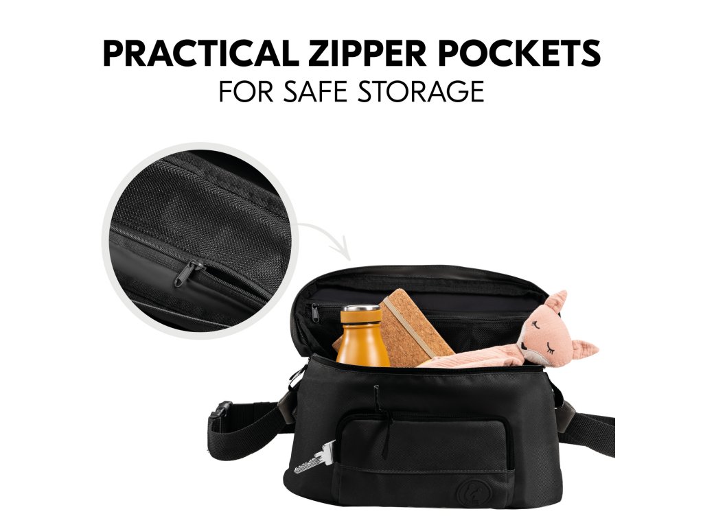 ĽAHKÉ A RÝCHLE // Organizér sa veľmi ľahko a rýchlo pripevní na kočík vďaka nastaviteľným popruhom na suchý zips. V prípade potreby možno upevňovacie popruhy odňať.
