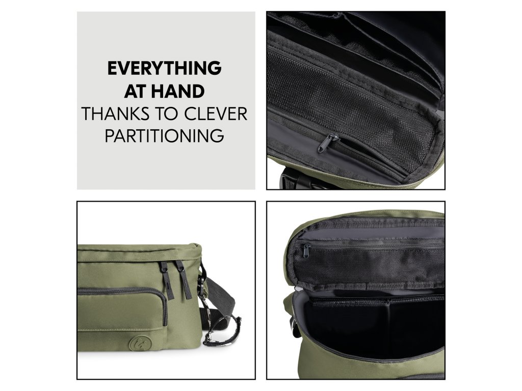 VŠETKO NA DOSAH Vďaka šikovným úchytom // Organizér poskytuje dostatok priestoru na potrebné veci pre dieťa, takže ich budete mať vždy po ruke. Na prednej strane je vrecko na telefón a vo vnútri praktické vrecko na kľúče.