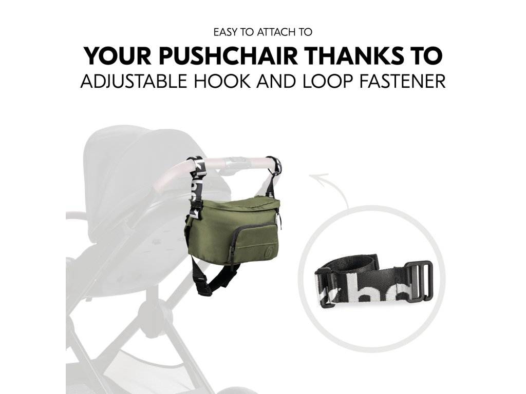 ĽAHKÉ A RÝCHLE // Organizér sa veľmi ľahko a rýchlo pripevní na kočík vďaka nastaviteľným popruhom na suchý zips. V prípade potreby možno upevňovacie popruhy odňať.